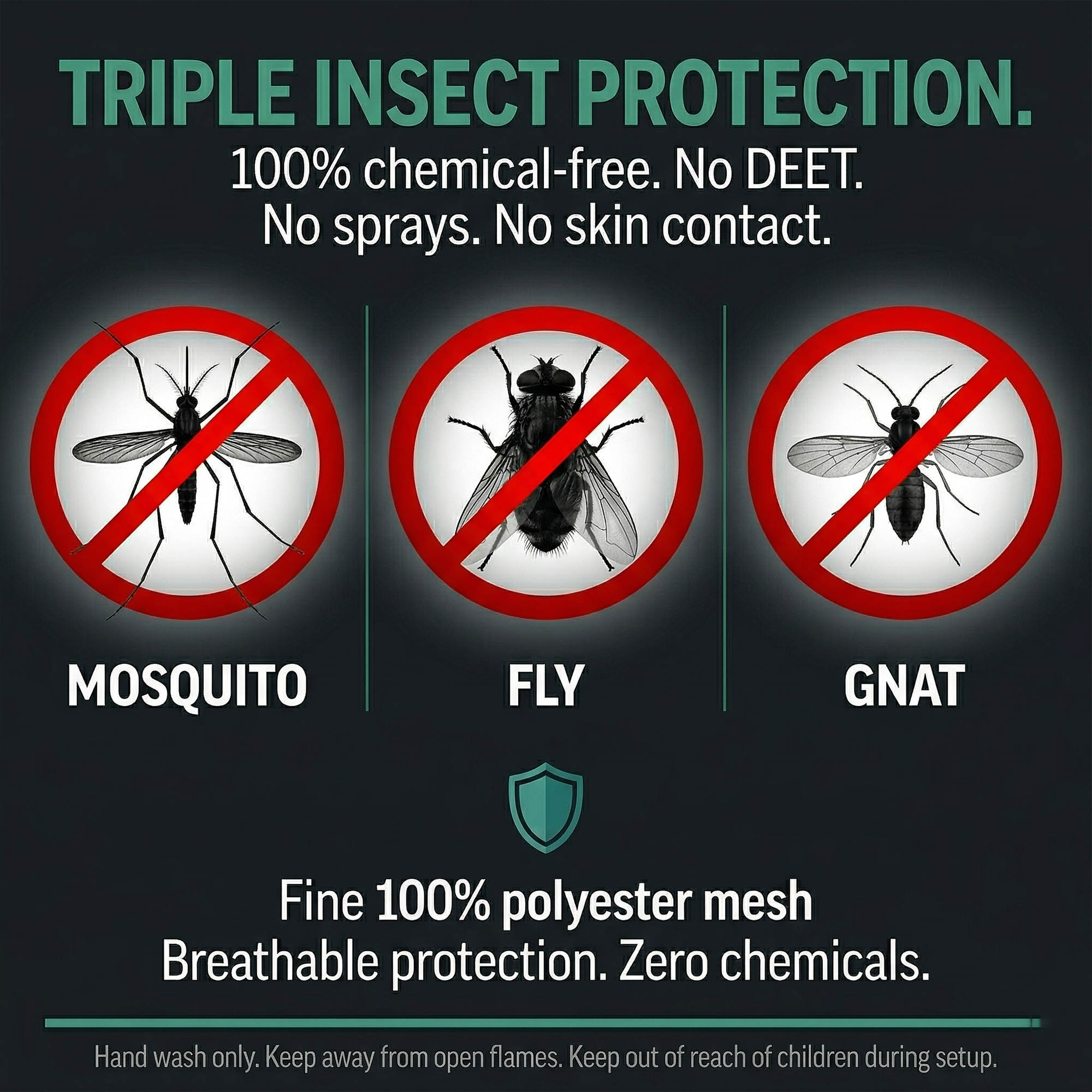 - PHYSICAL BARRIER – ZERO TOPICAL PRODUCTS NEEDED: Fine 100% polyester mesh creates a complete enclosure between you and the surrounding air. Safe for the whole family including children. Breathable mesh allows air to circulate freely all night.