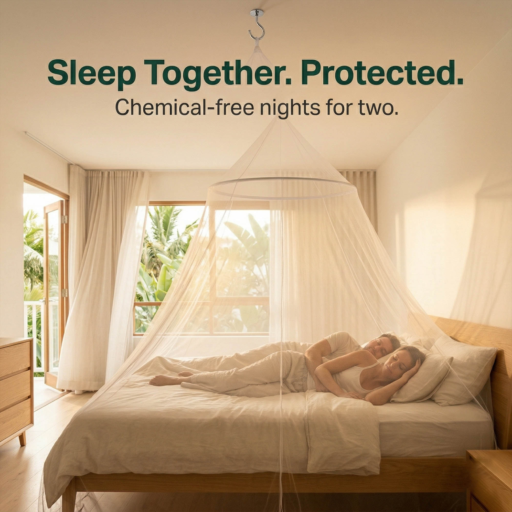 Beyond its functional purpose, the flowing white canopy transforms any bedroom into a calm resort-style retreat. Master bedrooms, guest rooms, and children’s rooms all benefit from both the physical enclosure and the elegant visual upgrade. Ideal for homes in Florida, Texas, Louisiana, and all coastal and humid climates. Perfect for couples, families with children, and anyone who wants calm undisturbed sleep.