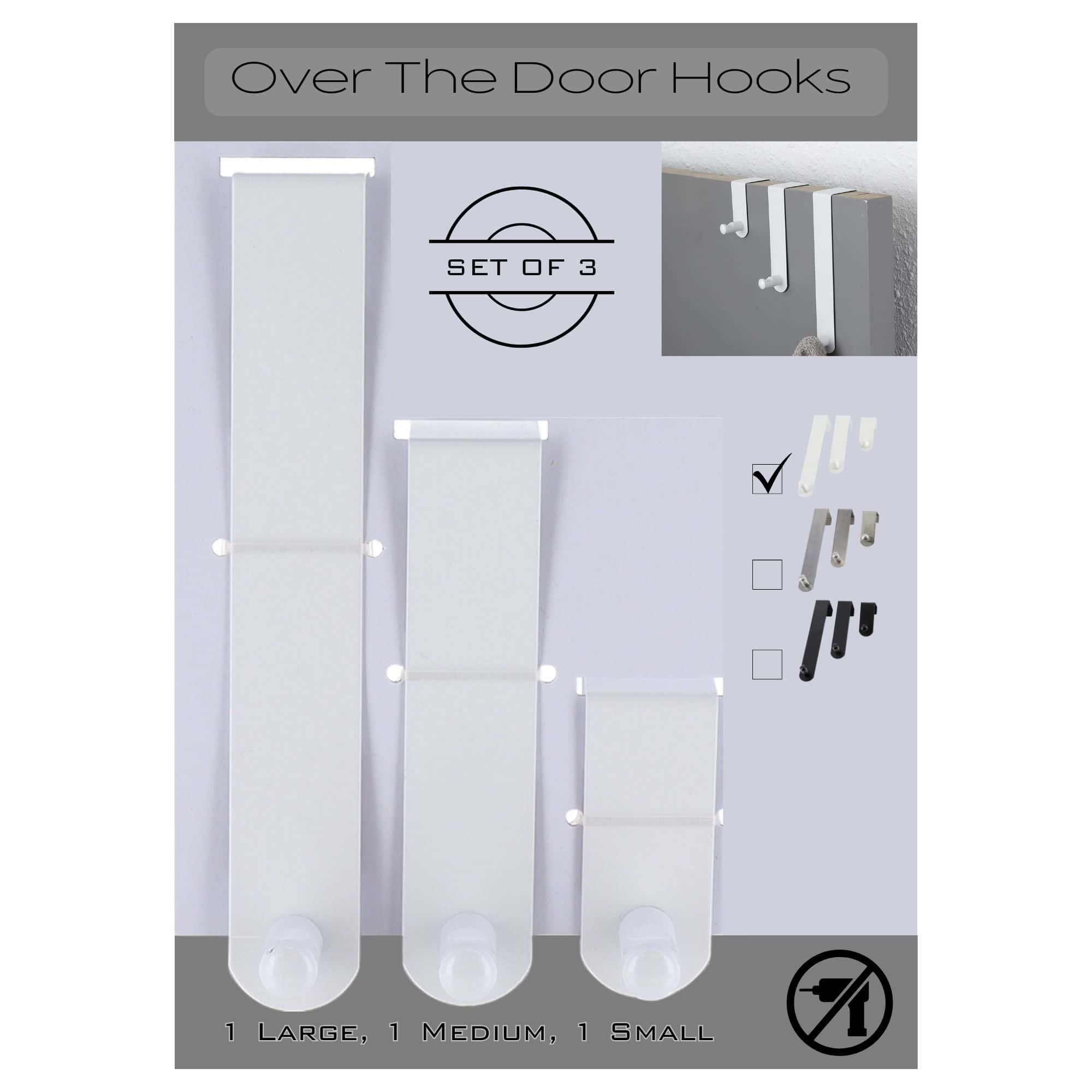 Adjustable White Over The Door Hooks – 3-Piece Door Hanger Set for Clothing and Accessories – Includes 1 Large, 1 Medium, 1 Small Door Rack
