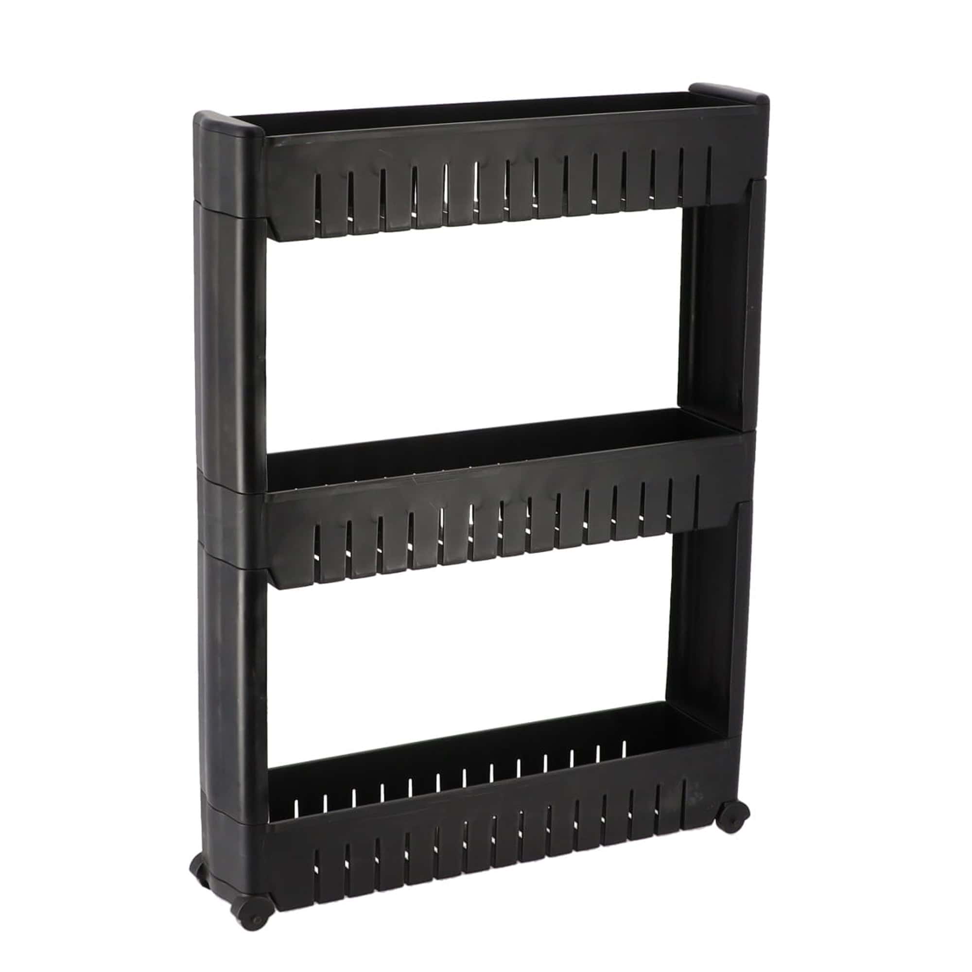 Discover the ultimate space maximizer for your home with our 3-Tier Slim Rolling Utility Cart. This multi-functional organizer is designed to slide into those tight spots, turning neglected gaps into valuable storage. Whether it’s laundry detergents in the washing area or spice bottles in the kitchen, the raised-edge shelves keep everything neatly in place while on the move. Assembling this utility cart is a breeze with our quick, snap-together design, and the durable construction keeps stability and longevity. Make the most of your home’s potential with this indispensable storage solution.