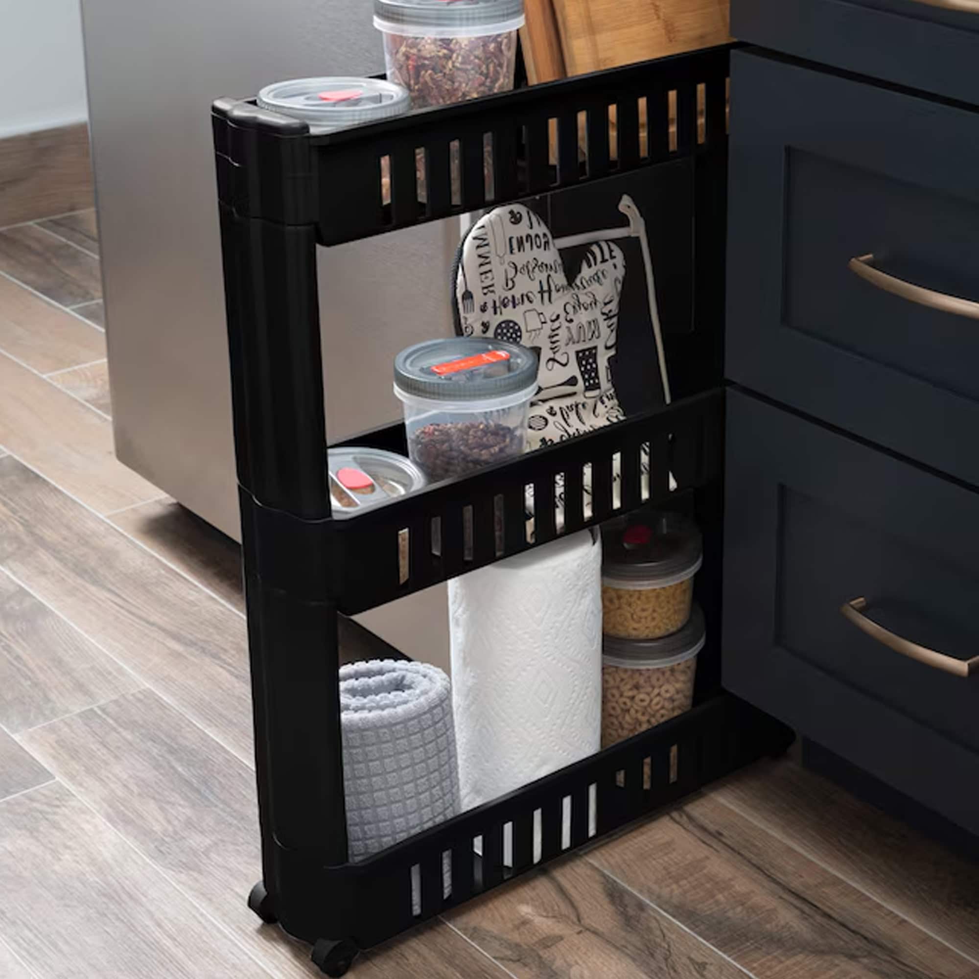 - Versatile Utility: Utility cart slim profile with 3 tiers, serves as kitchen storage rolling cart or bath cart.