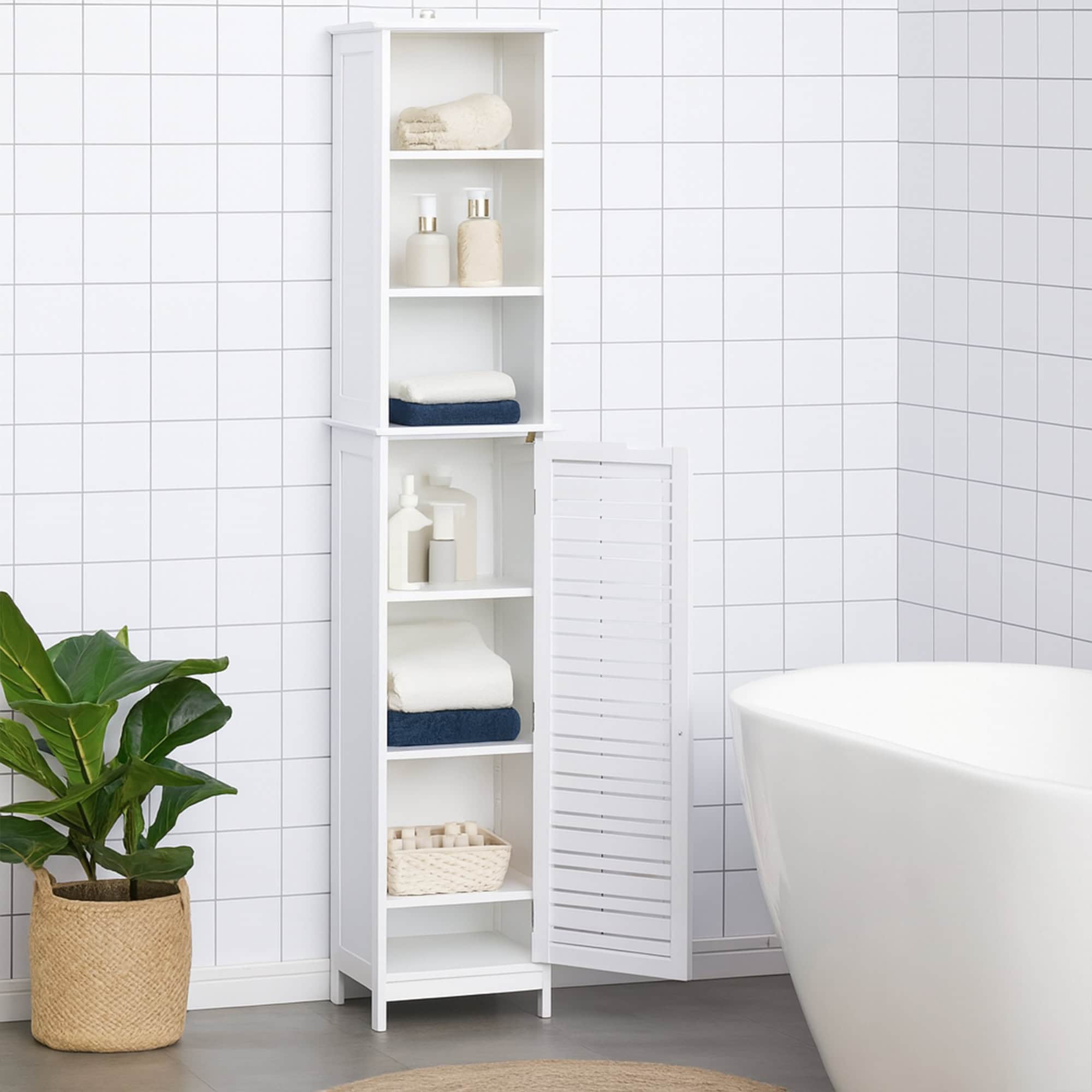 - VERSATILE STORAGE SOLUTION: Ideal for bathroom, laundry room, or hallway, this tall storage cabinet keeps your space organized and clutter-free