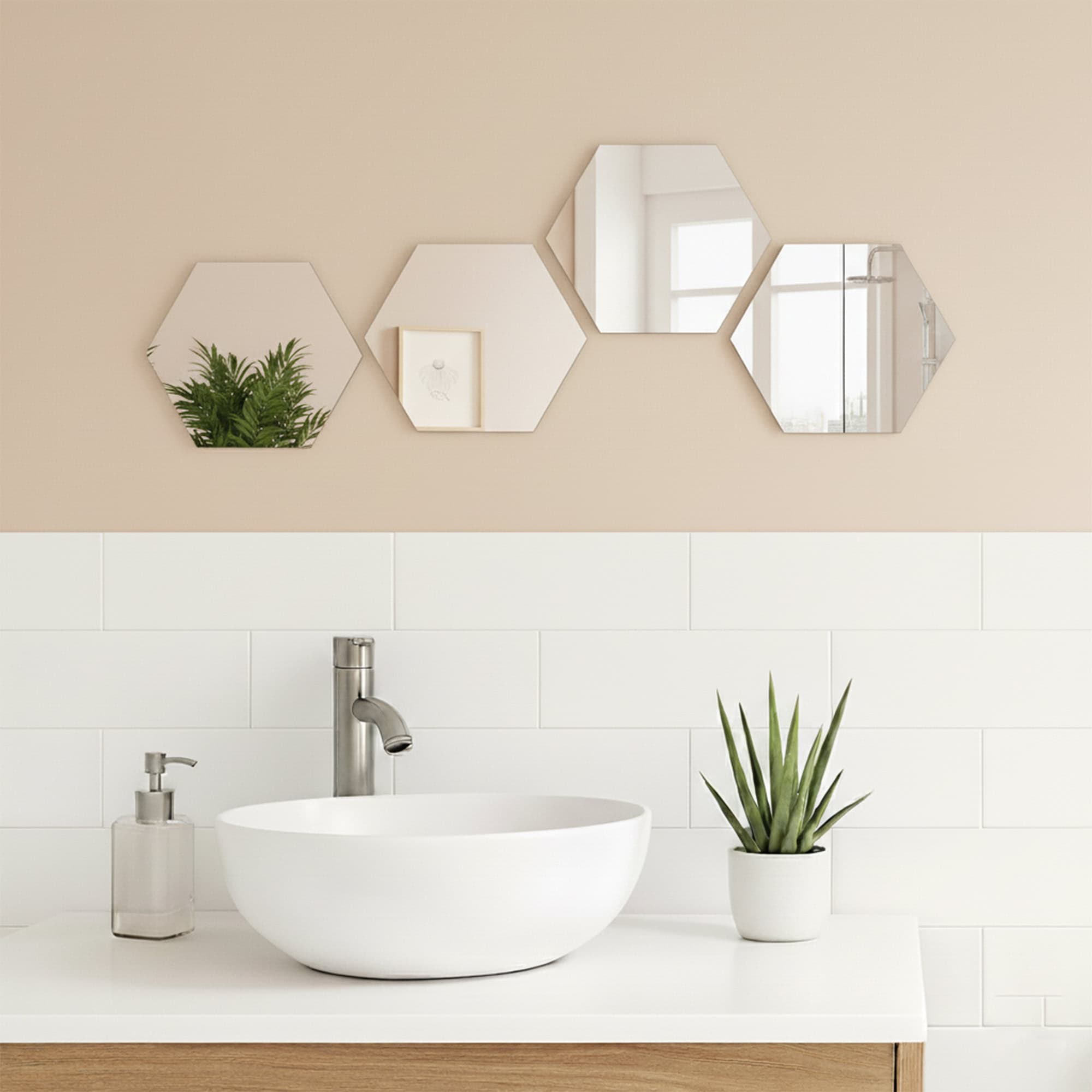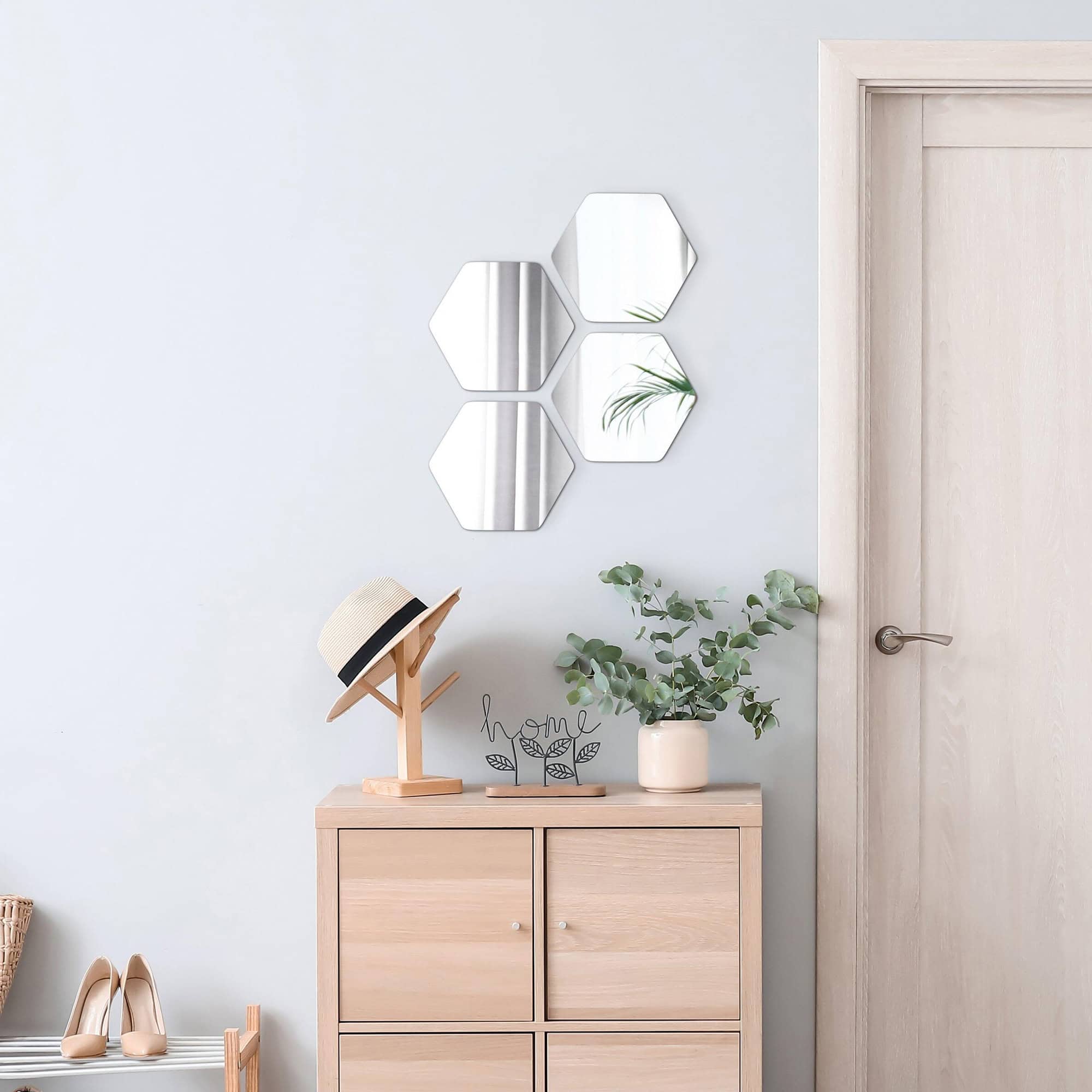 Small Decorative Wall Self Adhesive Hexagonal Shaped Mirrors – Set of 4