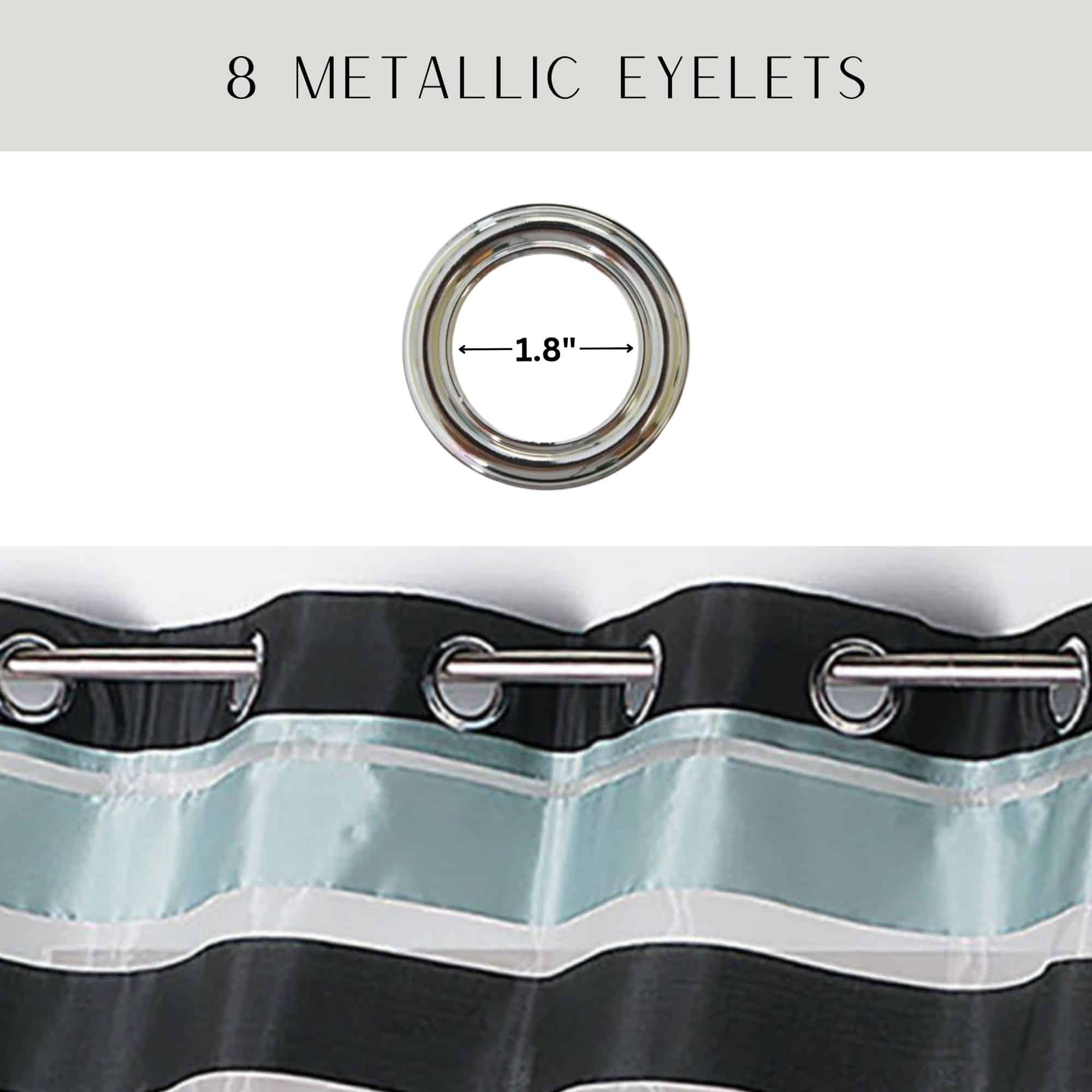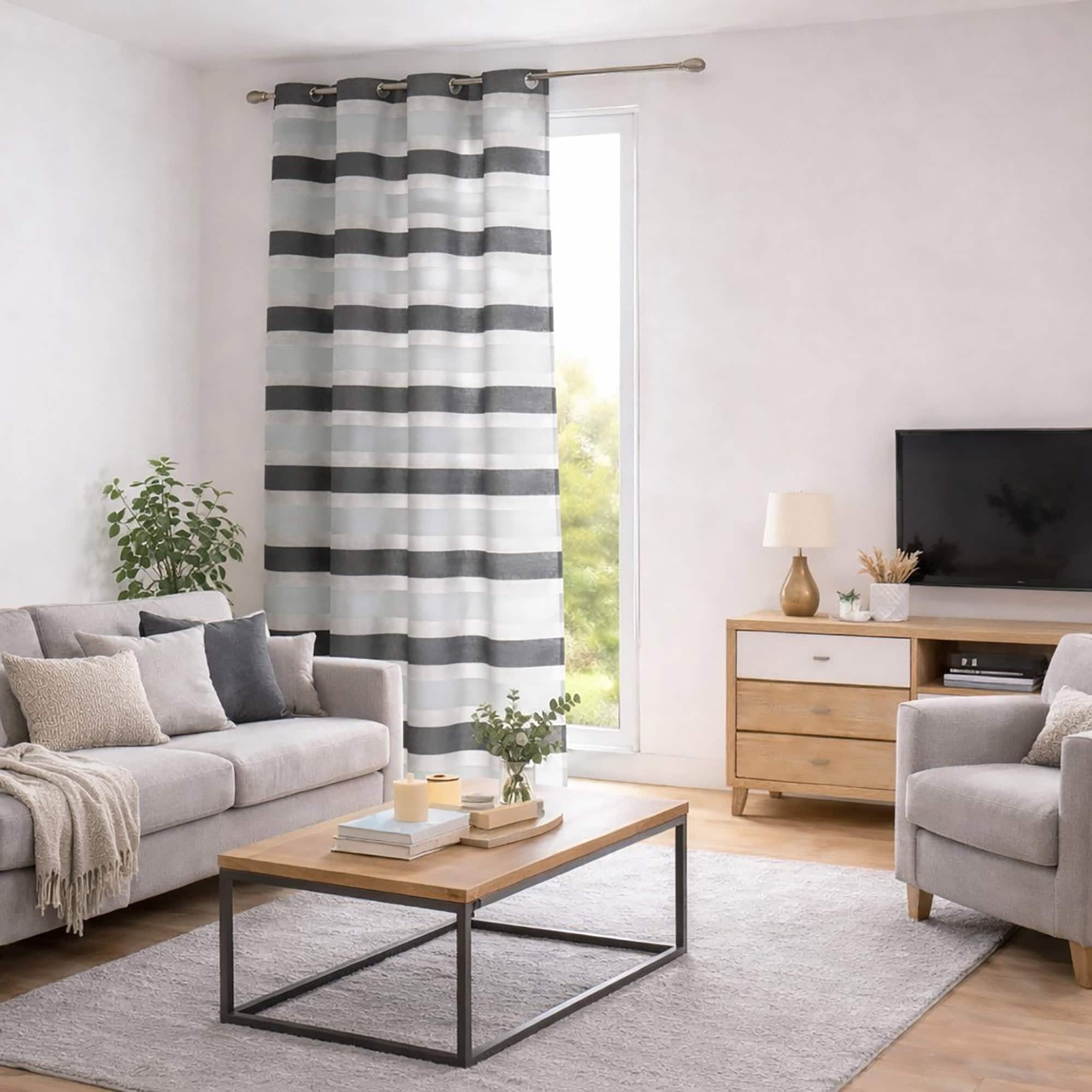 Enhance your interior with our Black and Blue Gray Striped Sheer Panel.
