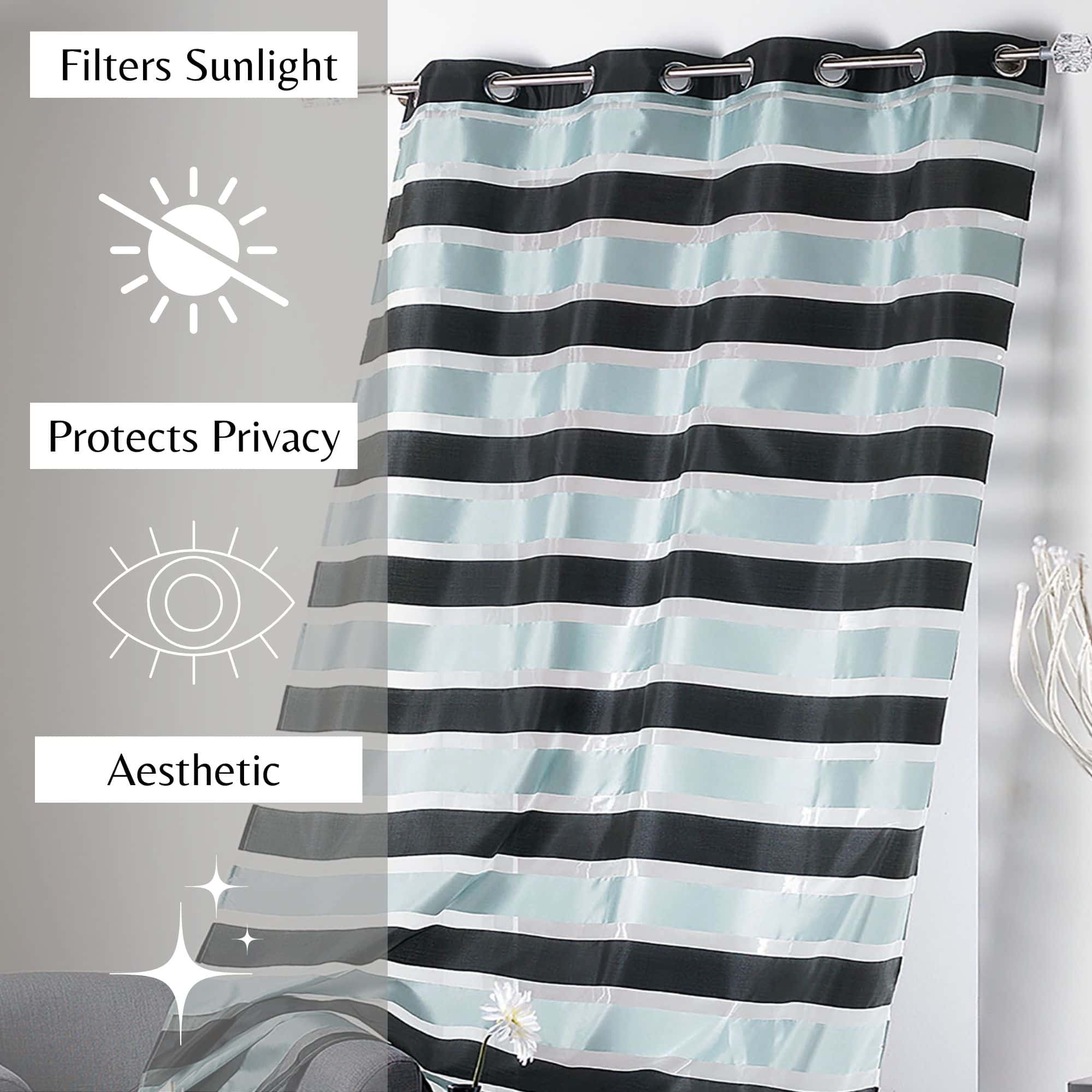 Enjoy the perfect balance of intimacy and light in your home with our Black and Blue Gray Striped Sheer Panel.
