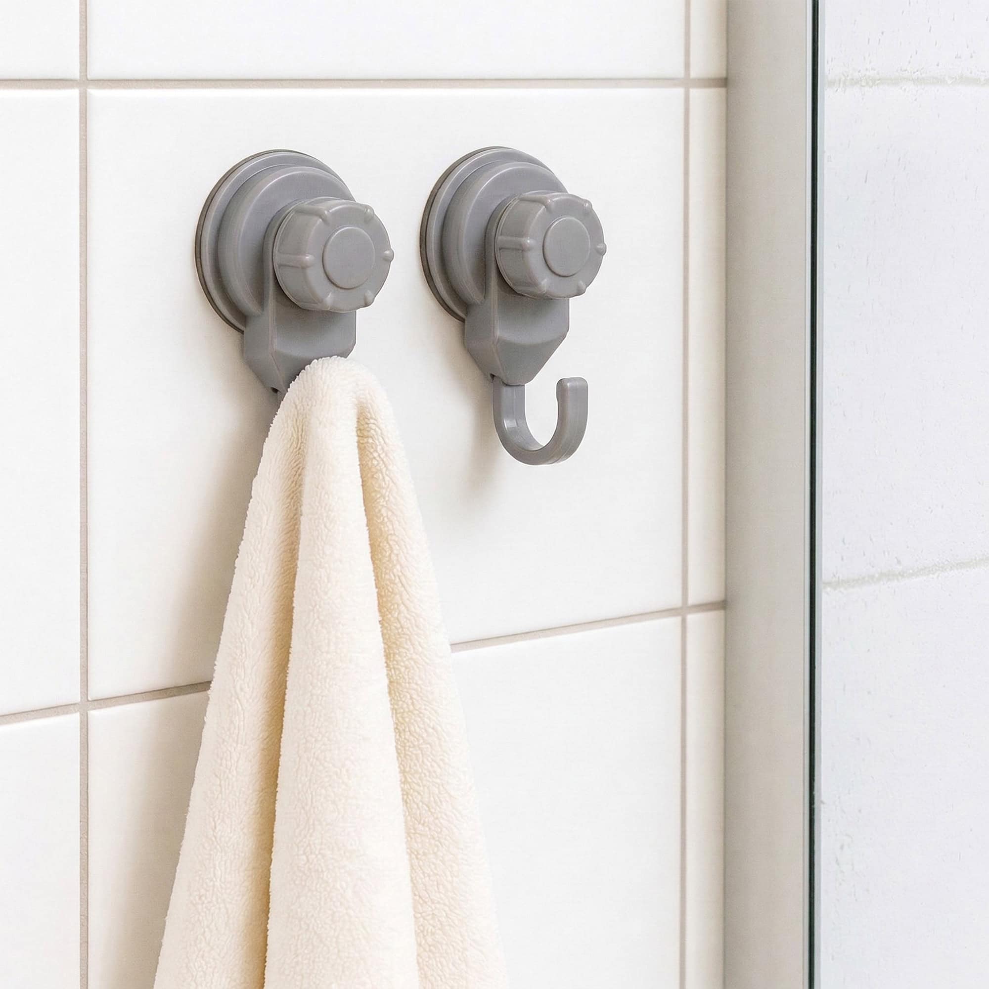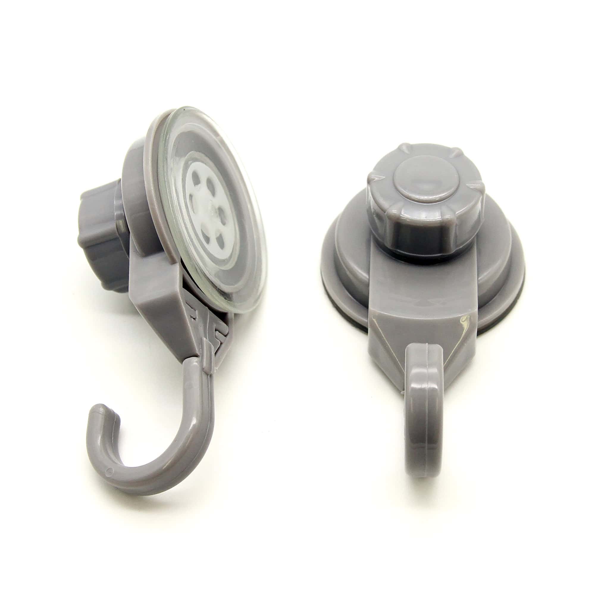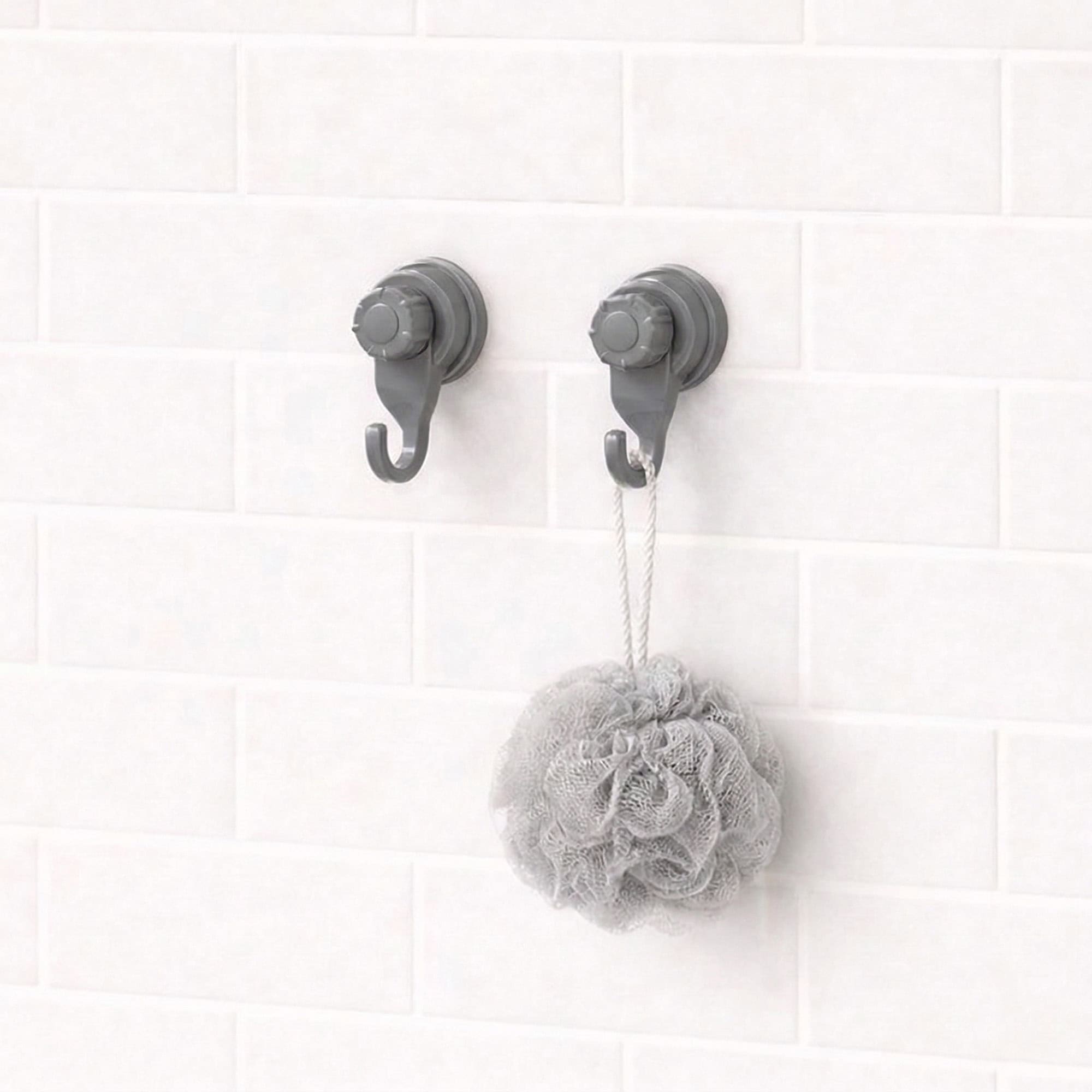 Strong Hold Vacuum Suction Cup Hooks Shower-Kitchen Walls Organizer Loofah Set of 2 Gray