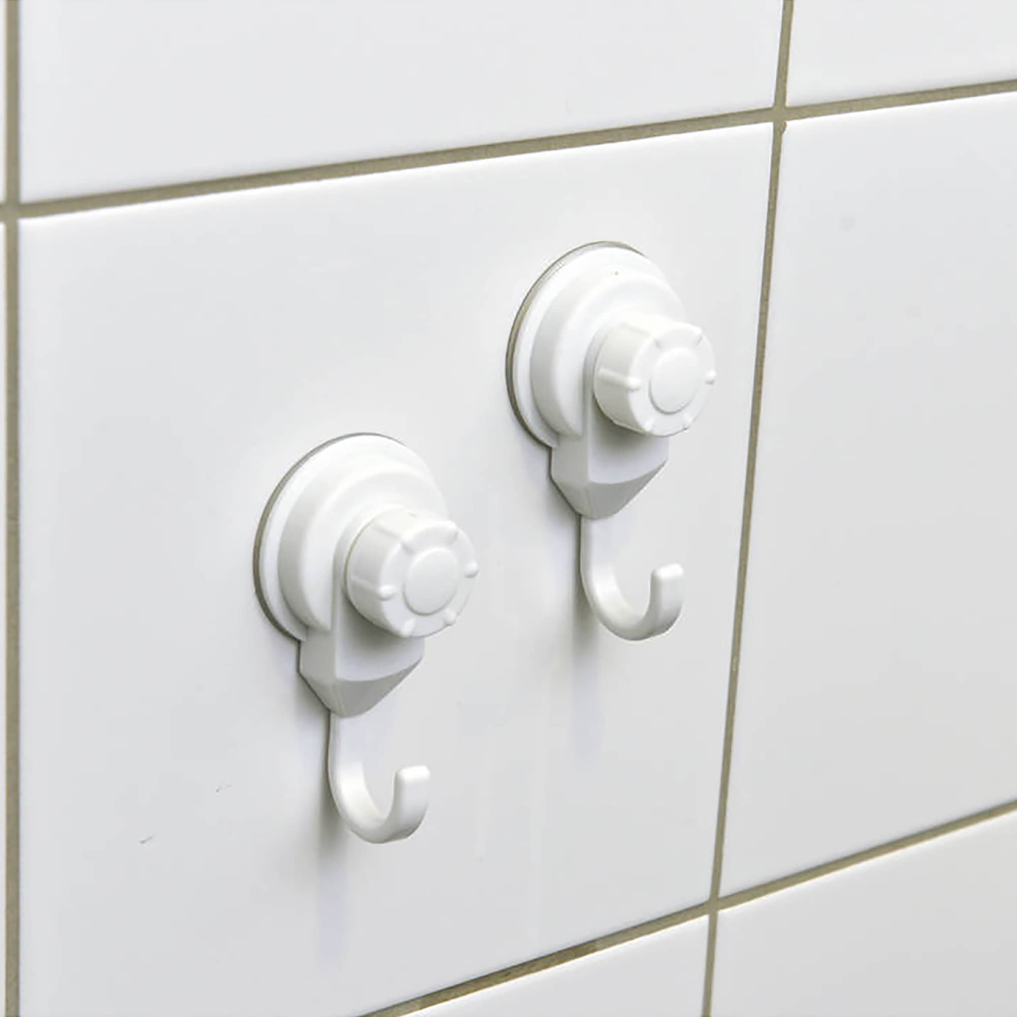 Strong Hold Vacuum Suction Cup Hooks Shower-Kitchen Walls Organizer Loofah Set of 2 White