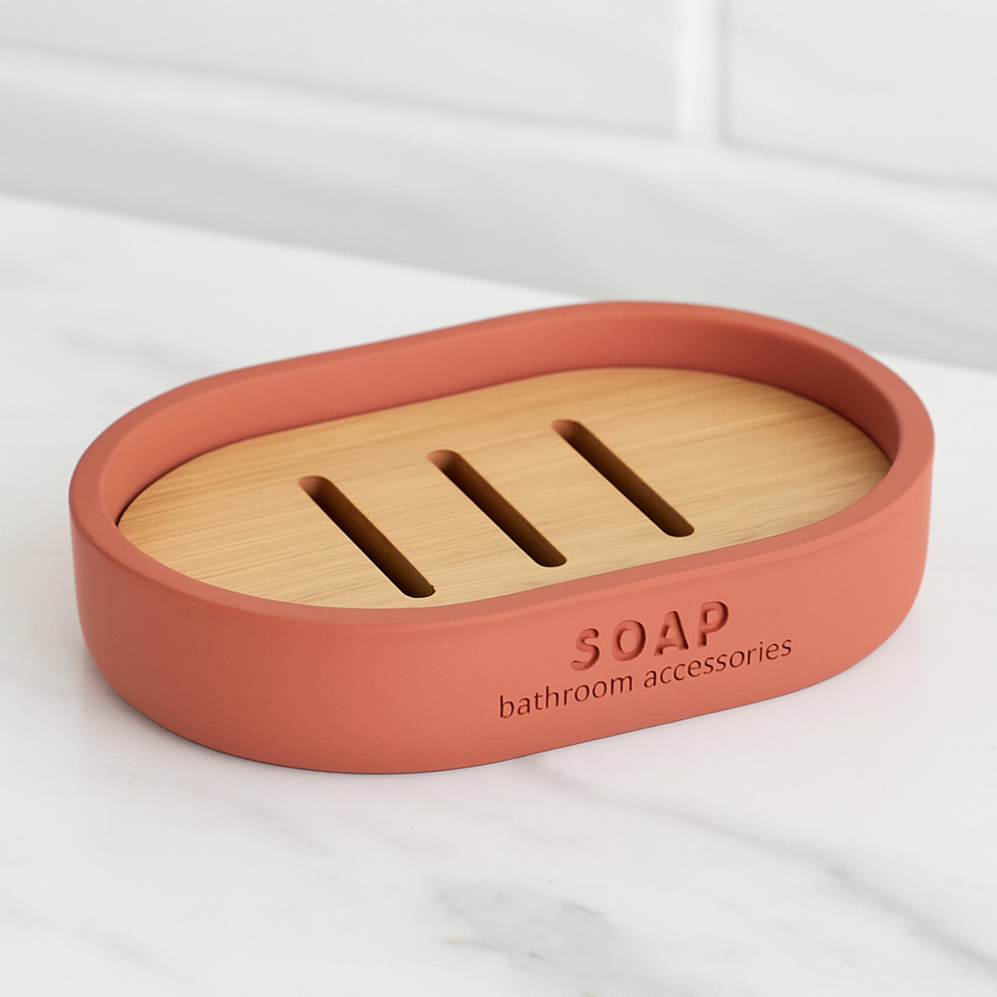 Chic Terracotta Polyresin Soap Dish with Draining Bamboo Insert – Versatile Soap Holder for Contemporary Home