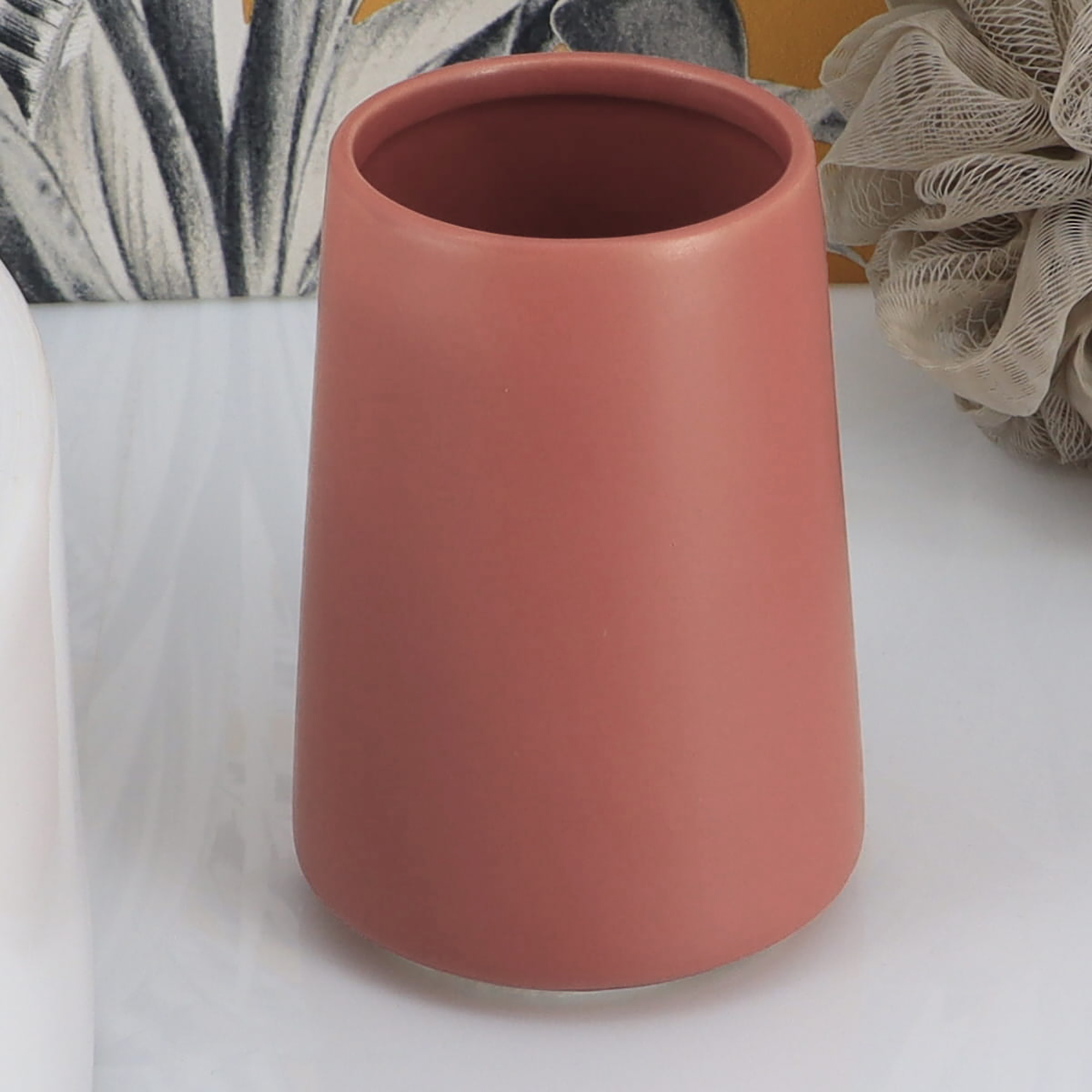In conclusion, add a touch of elegance to your bathroom routine with the Terracotta stoneware tumbler & toothbrush holder.