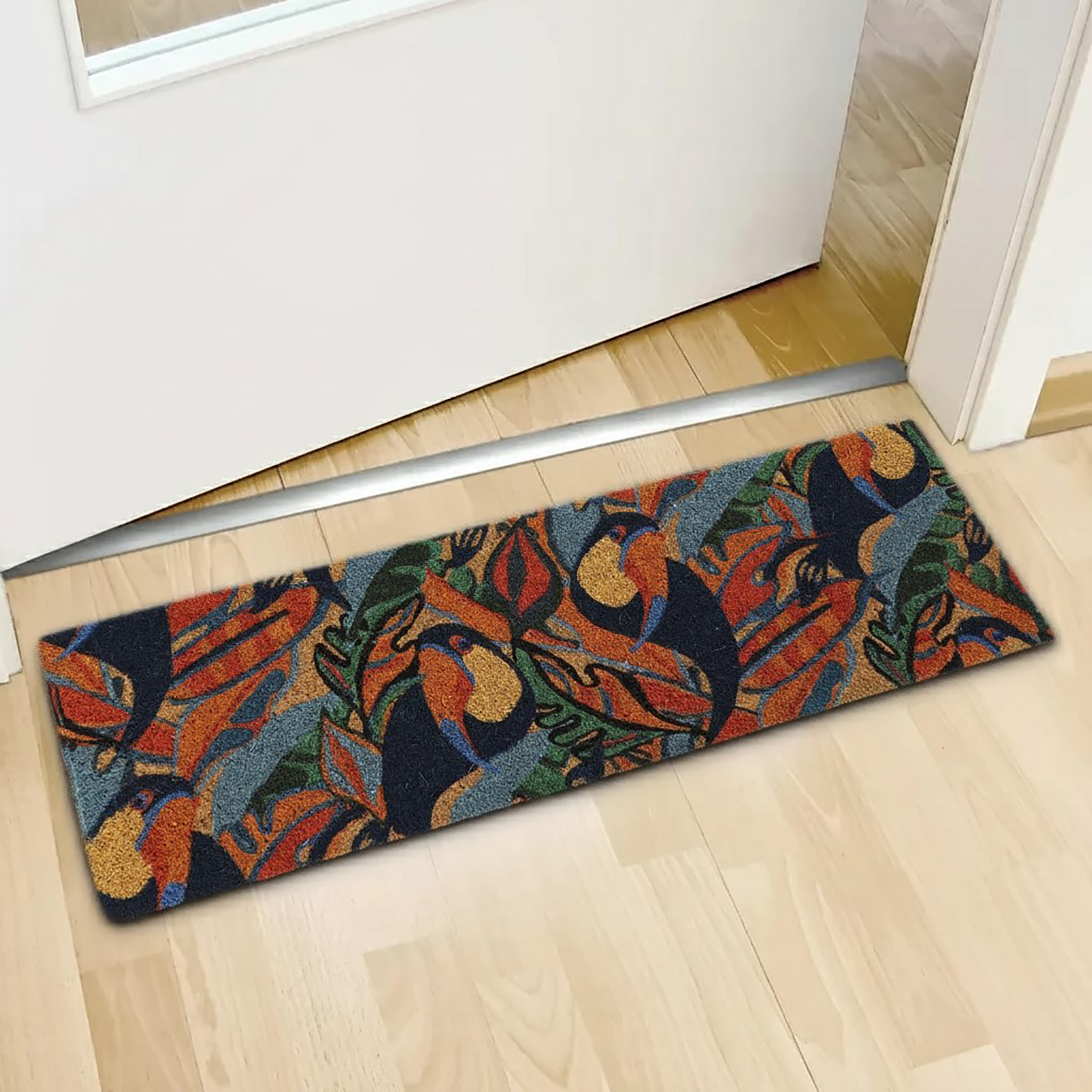 - TROPICAL DESIGN: This coir door mat with colorful toucans print creates a vibrant and exotic atmosphere in seconds. All in length, you will be seduced by its size. Color: Multicolor