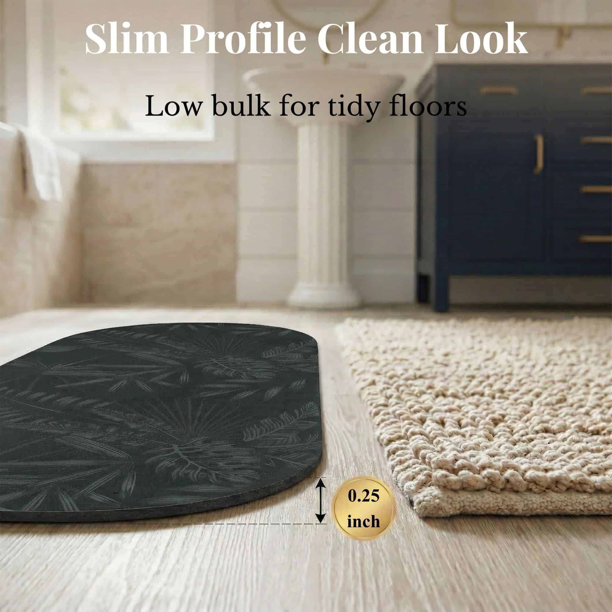 - STYLISH ELONGATED DESIGN: Designed with deep green tropical foliage on a bold oval format, this bathroom rug adds rich, moody character to dark or natural-inspired bathrooms