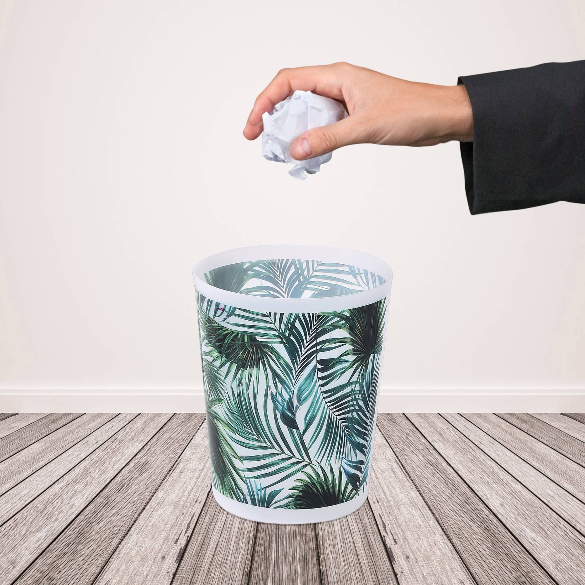 - Fresh Design: Infuse your space with the lush of the tropics. Featuring a blue-green palm leaf pattern, our exotic waste bin brings a revitalizing vibe to any room