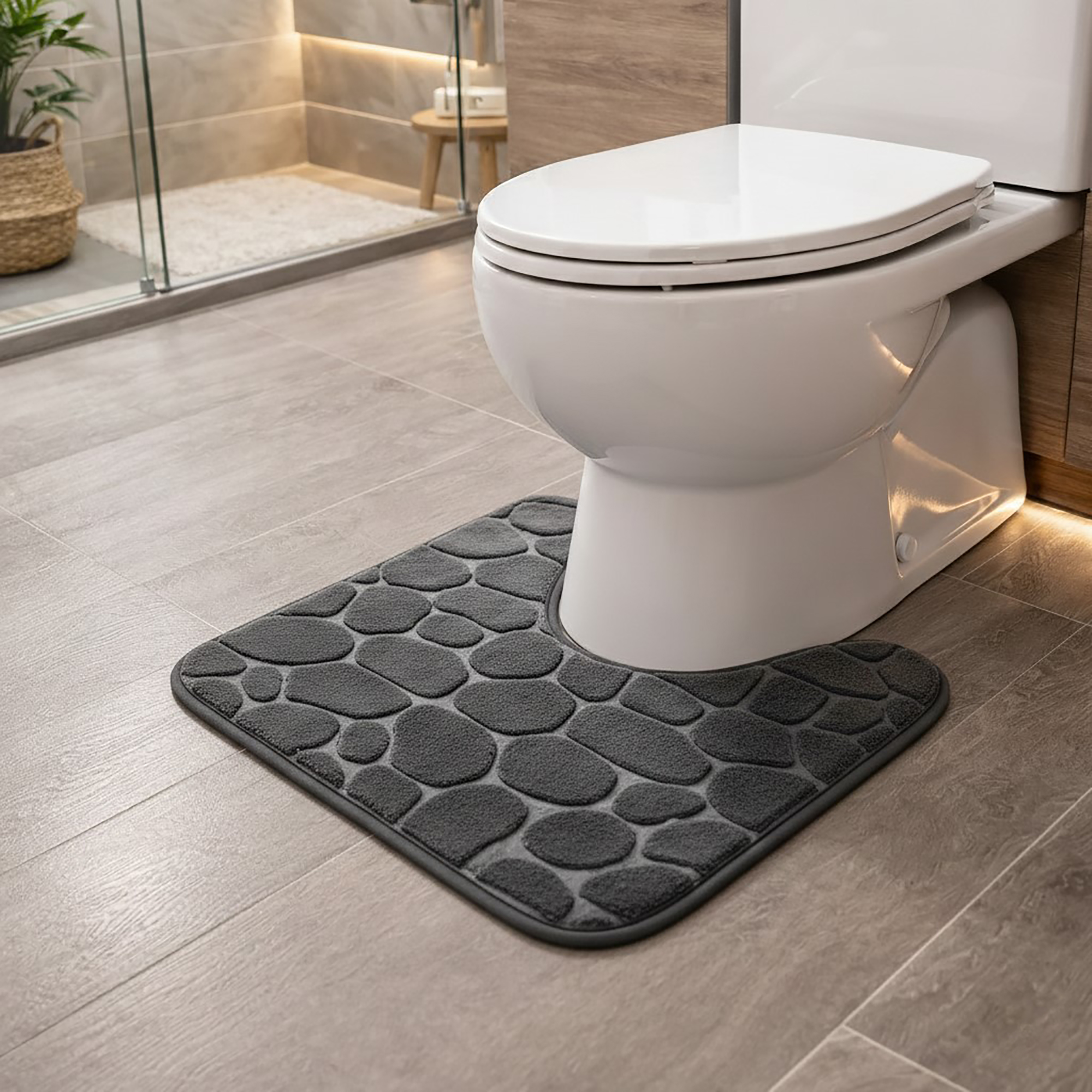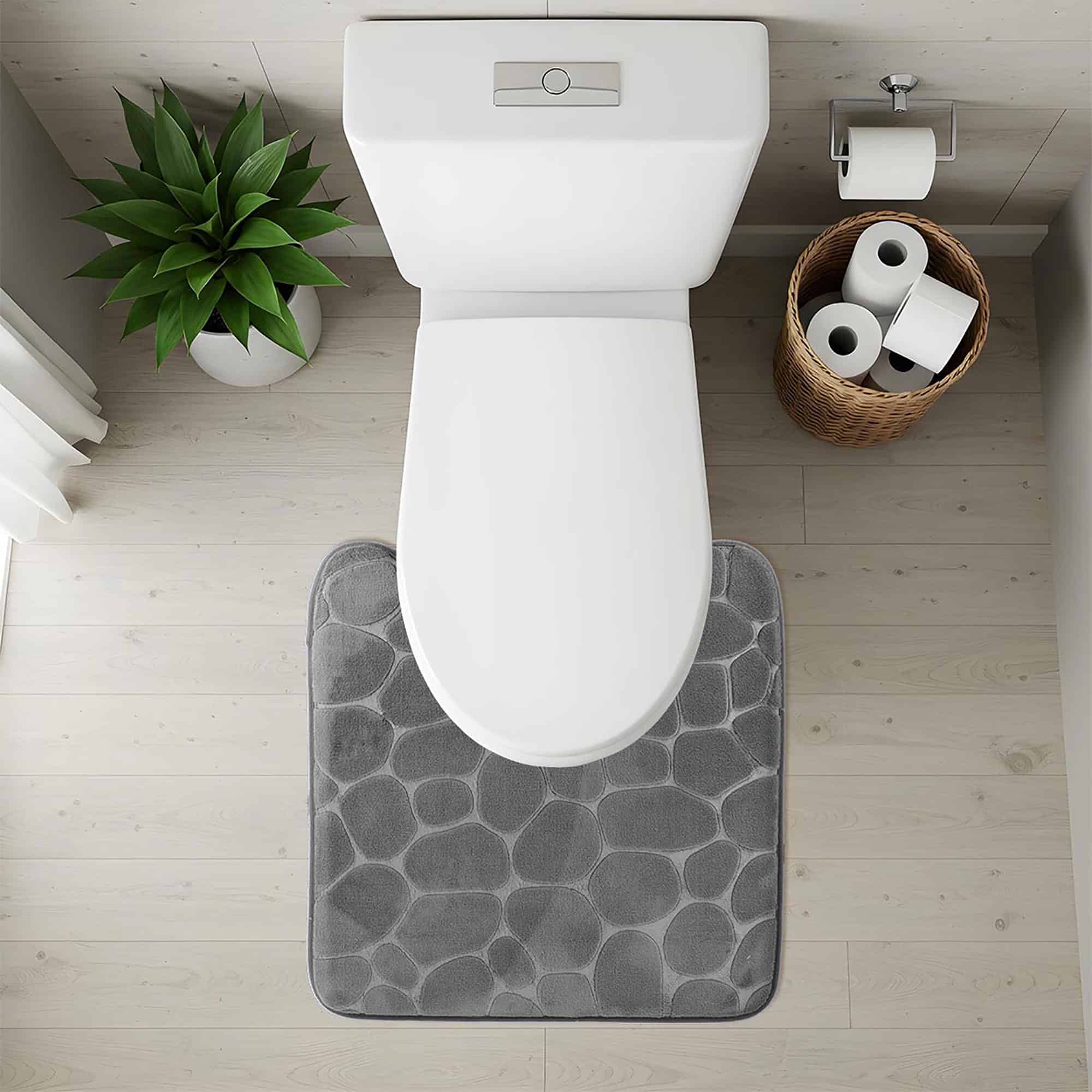 Start your daily routine in comfort with this Ultra-Soft Dark Gray Memory Foam Toilet Rug, designed to fit perfectly around the base of the toilet.