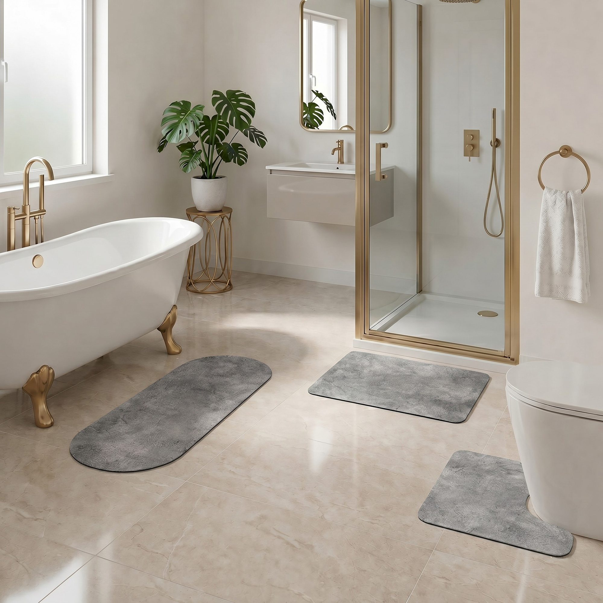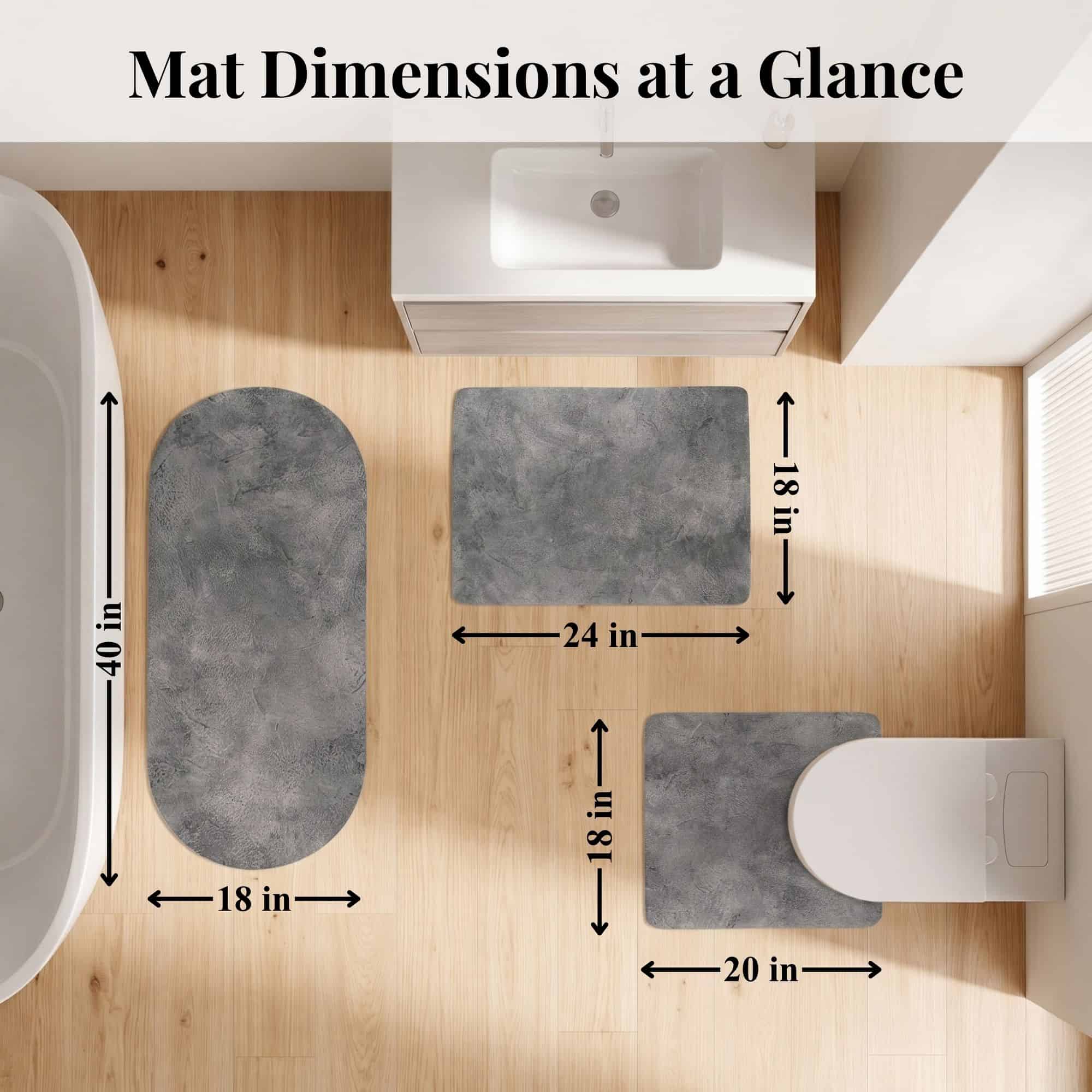 Urban Concrete 3-Piece Bath Mat Set – Full Bathroom Coverage