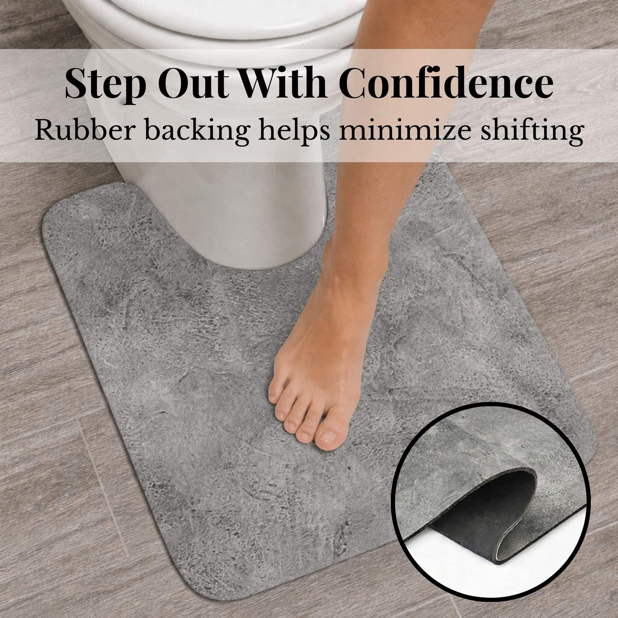 Urban Concrete Contour Toilet Mat 20×18 – Modern Non-Slip Bath Rug, Quick Dry
