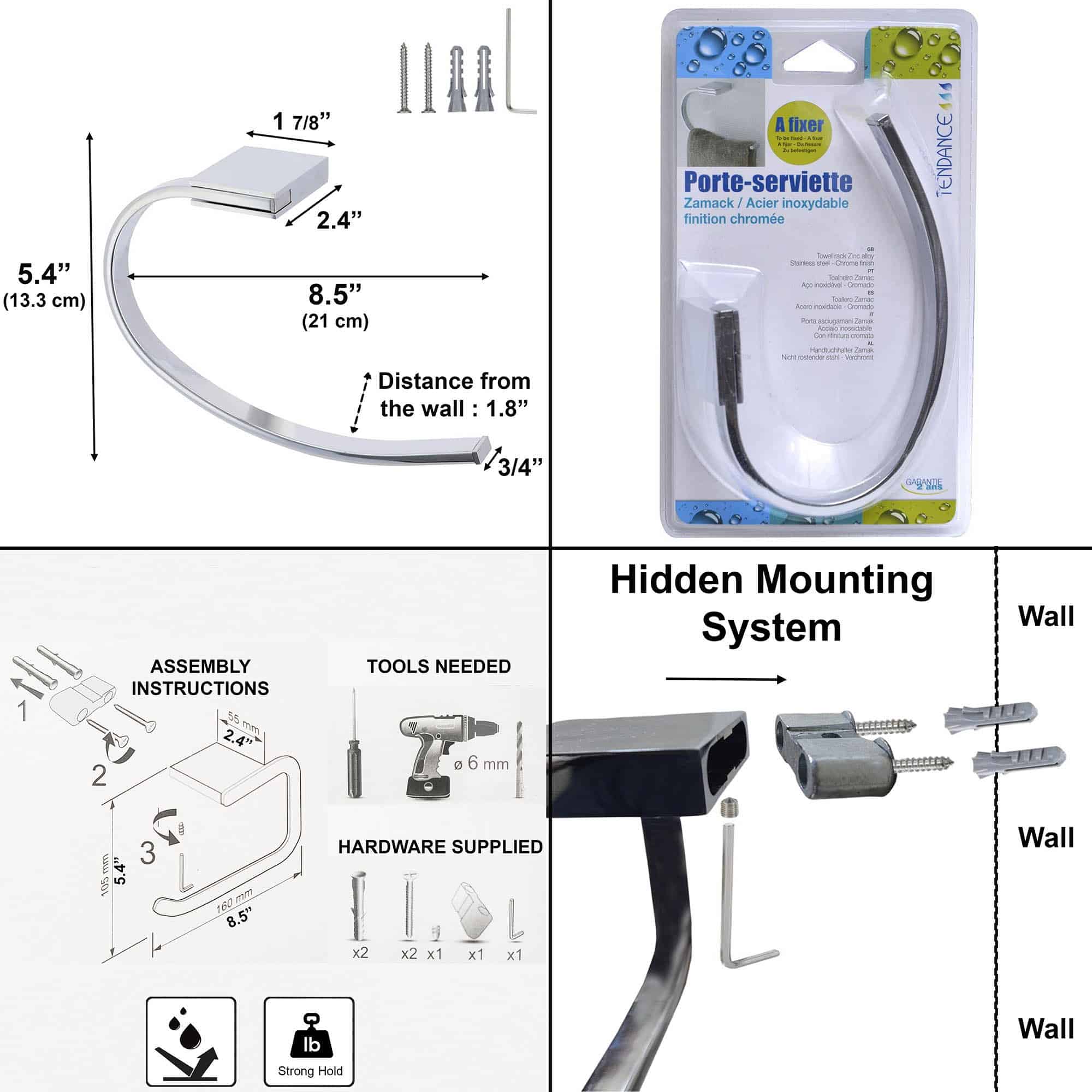At last, keep everything organized, neater and, most importantly, dry! Match your home décor and your own style in seconds with this wall mounted hand towel holder bar ring. Imported from France, Made in China
