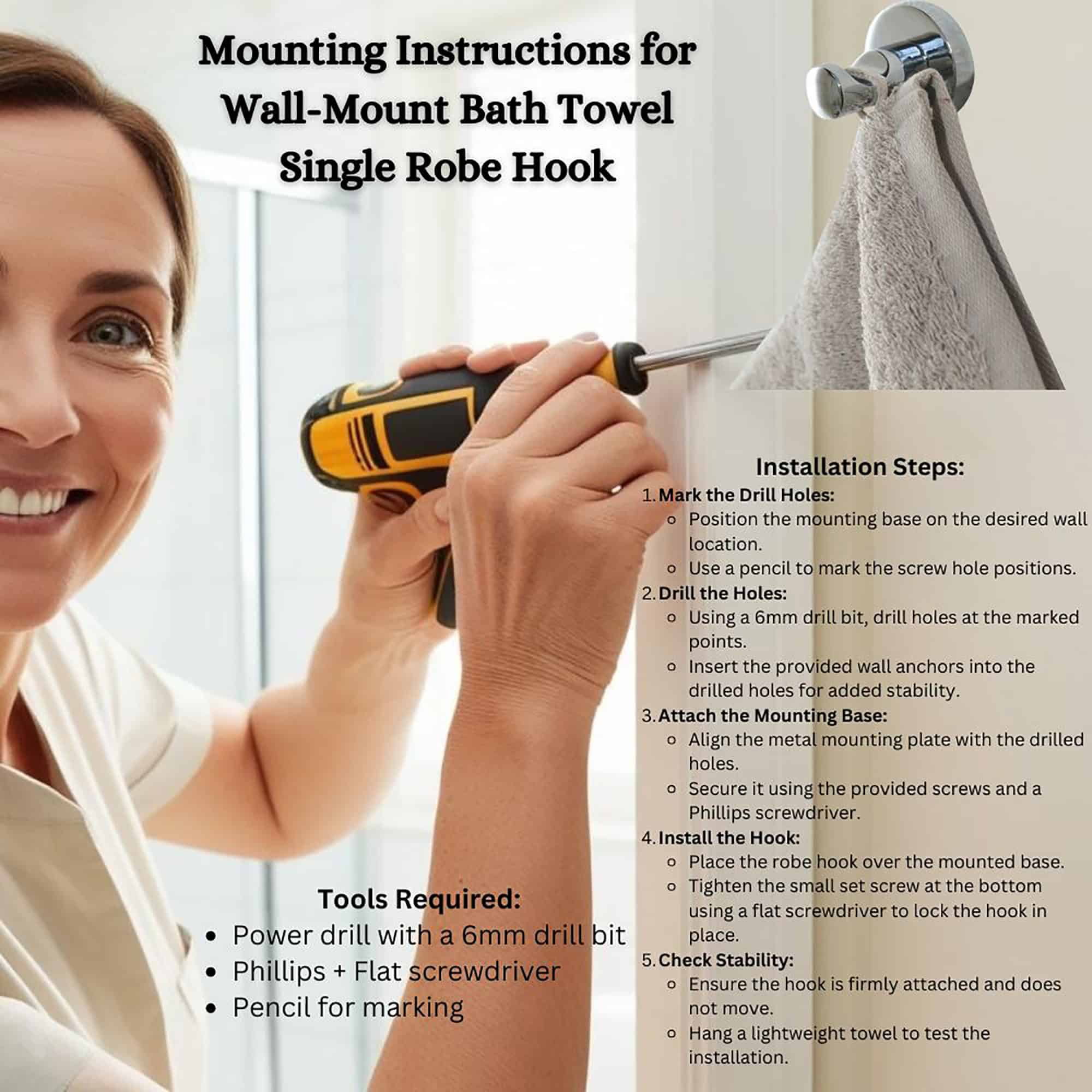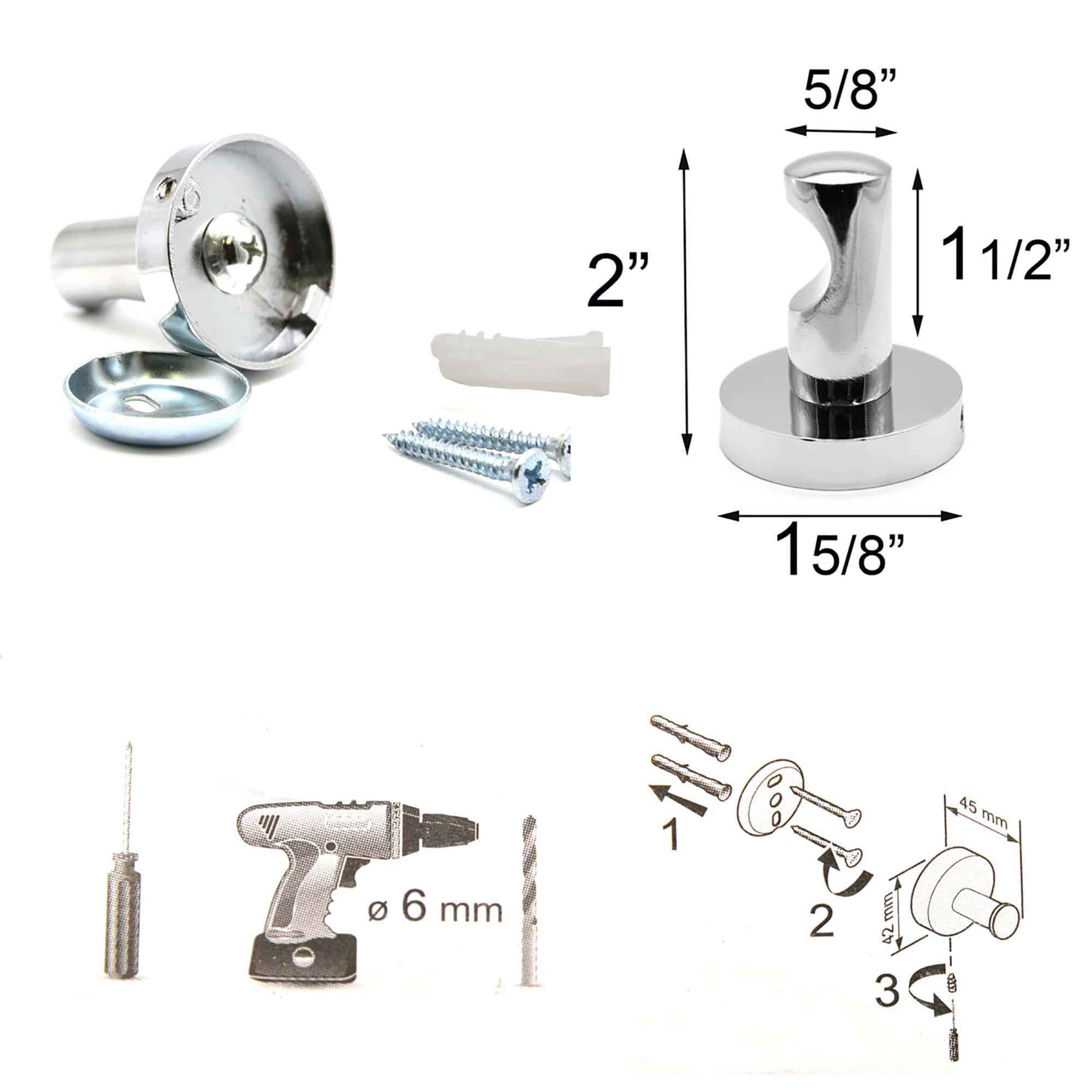 The concealed screw mount provides a clean, seamless installation. Includes screws, wall anchors, and a mounting plate for hassle-free setup. Perfect for bathrooms, bedrooms, or entryways, ensuring items stay neatly hung.