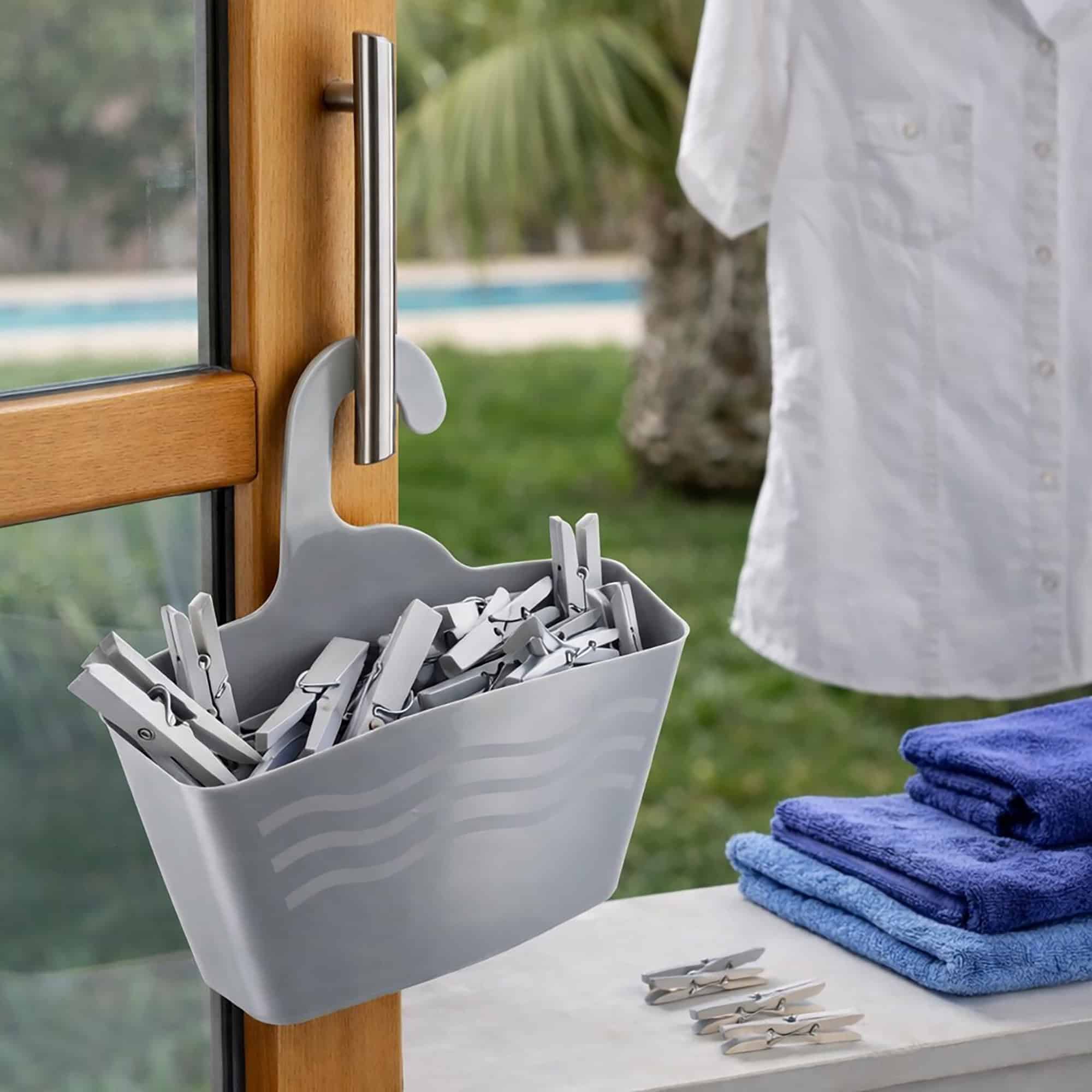 Finally, this clever little portable shelving unit can be used to organize other rooms in your home. Clearly, this Hanging Grey Shower Caddy Organizer Plastic Basket is great to be used as a letter holder, a kitchen organizer or a laundry room organizer. Imported from France, Made in China