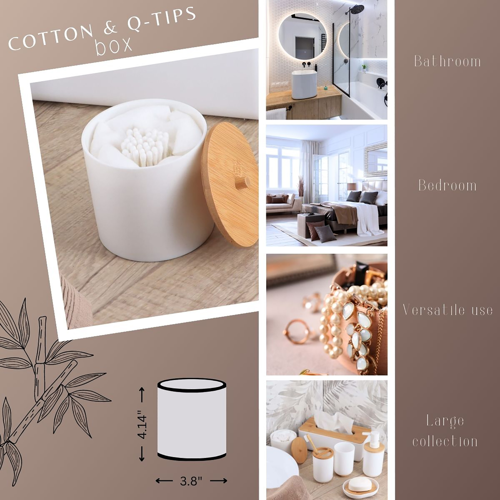 - Versatile storage: Conveniently store cotton pads and Q-tips, keeping essentials close at hand while maintaining a tidy space. Dimensions: 3.8”L x 4.14”H