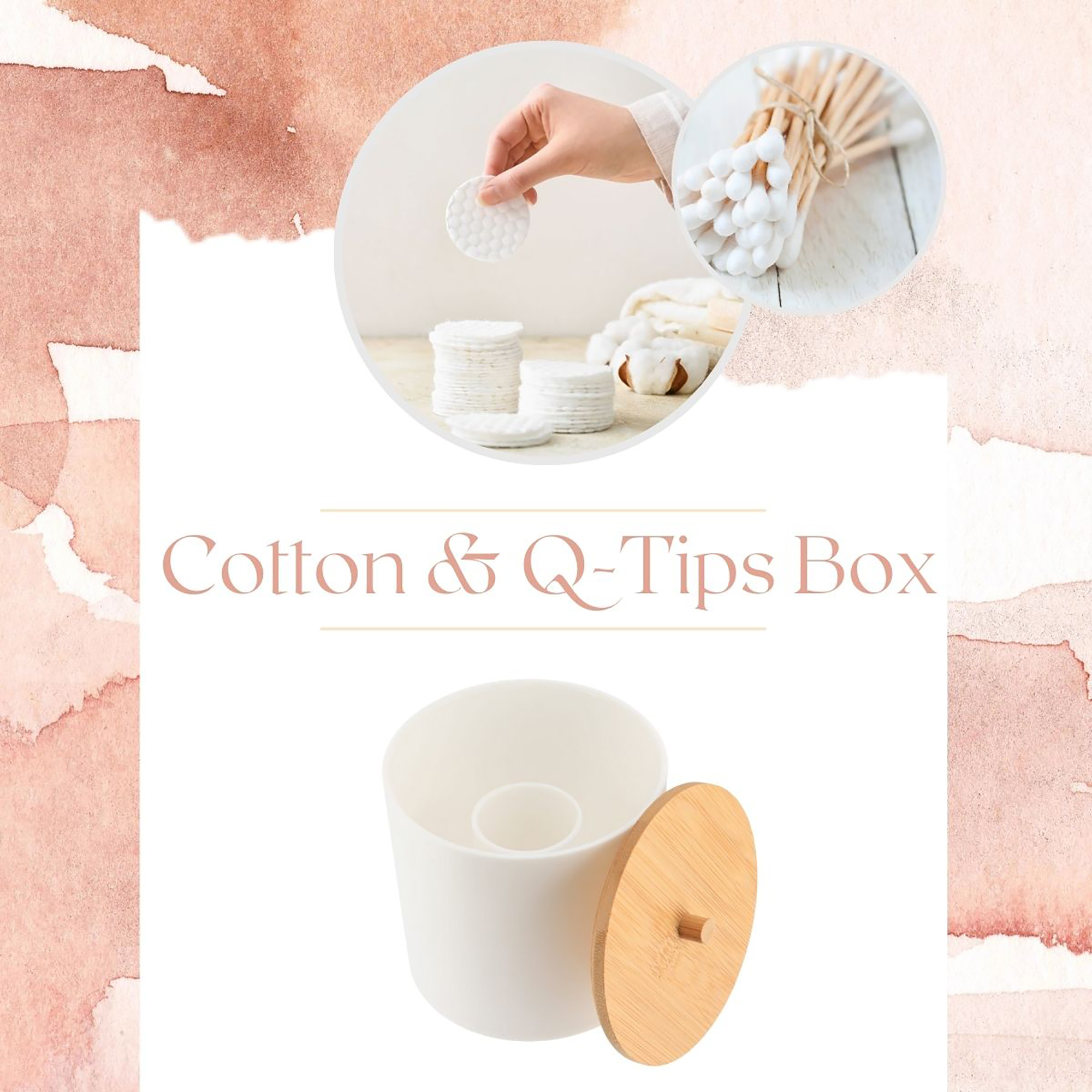 With its pristine white design and bamboo-accented top, our cotton and Q-Tips box adds a touch of sophistication to any decor. But it’s not just about looks: this cotton pad storage is all about efficiency.