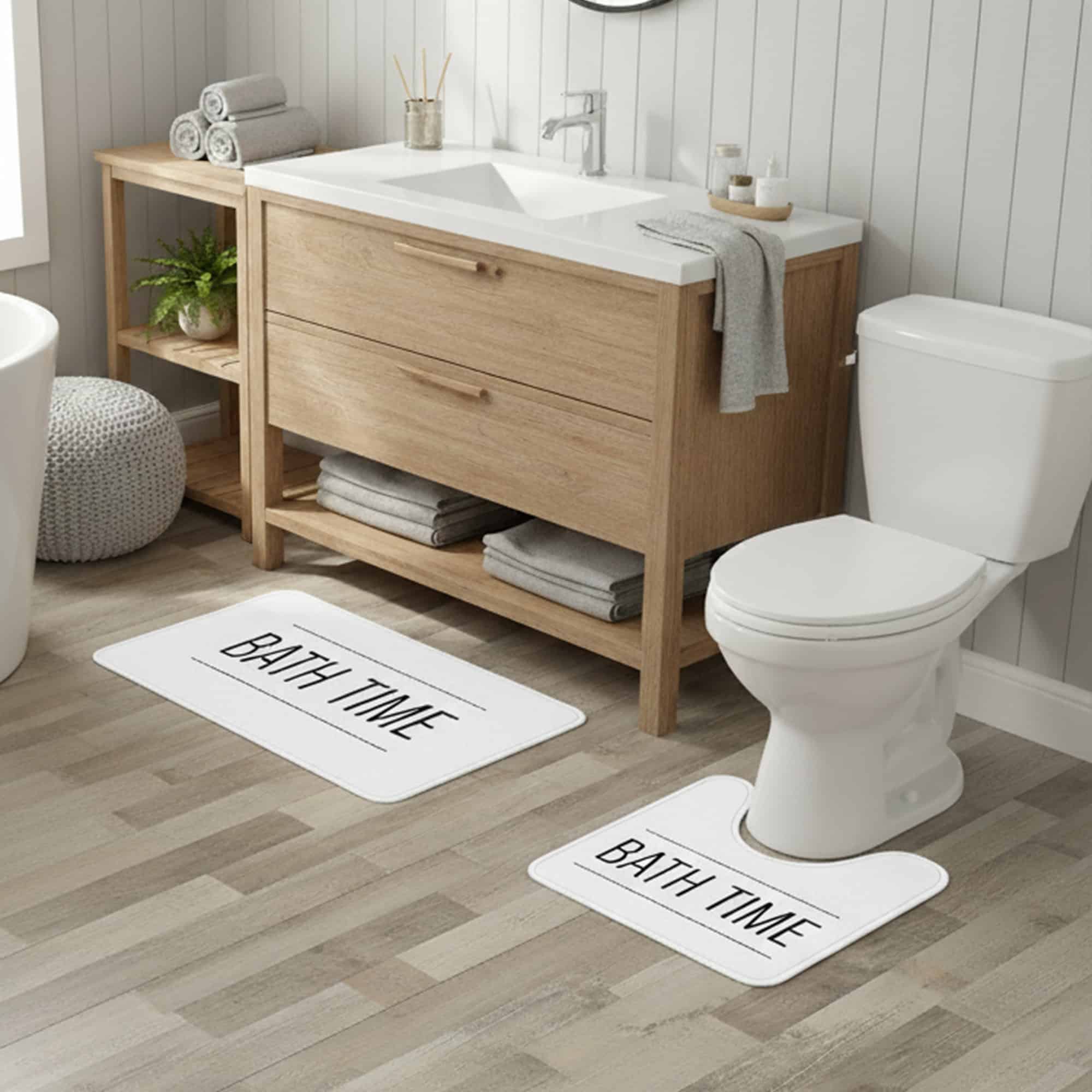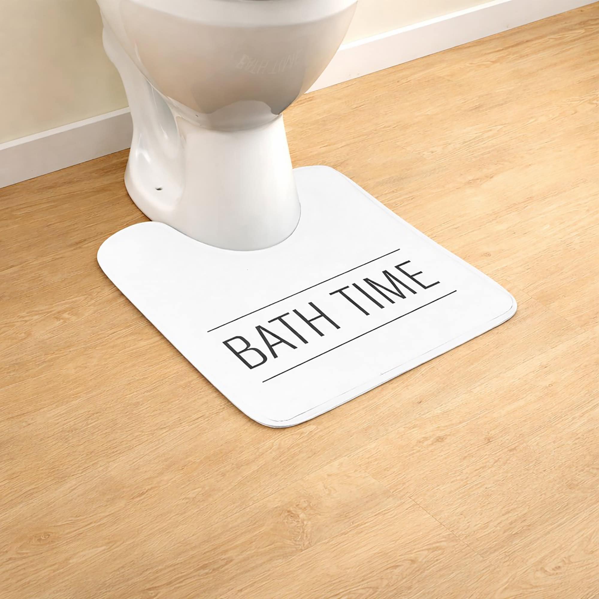 But what sets our toilet bath mat apart is its stylish ‘Bath Time’ writing. This sleek and elegant black and white look adds a touch of sophistication to your decor. Timeless and versatile, it is easy to match any bathroom style.