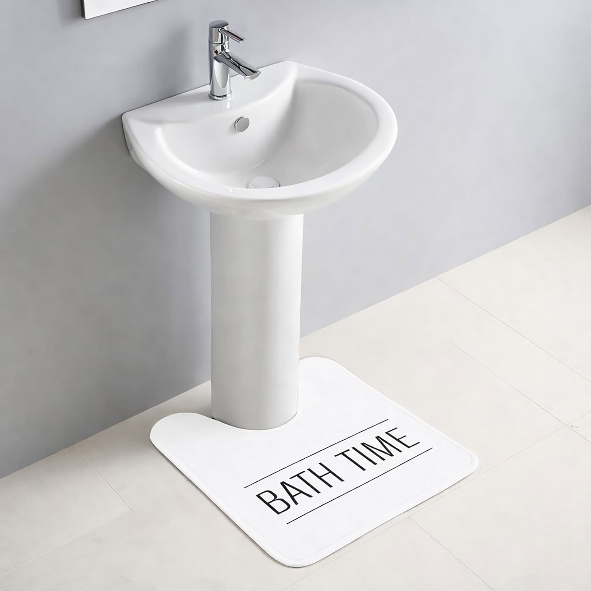 White Microfiber Contour Bath Rug – 20 x 18 Inches – Non-Slip Design and Stylish ‘Bath Time’ Print