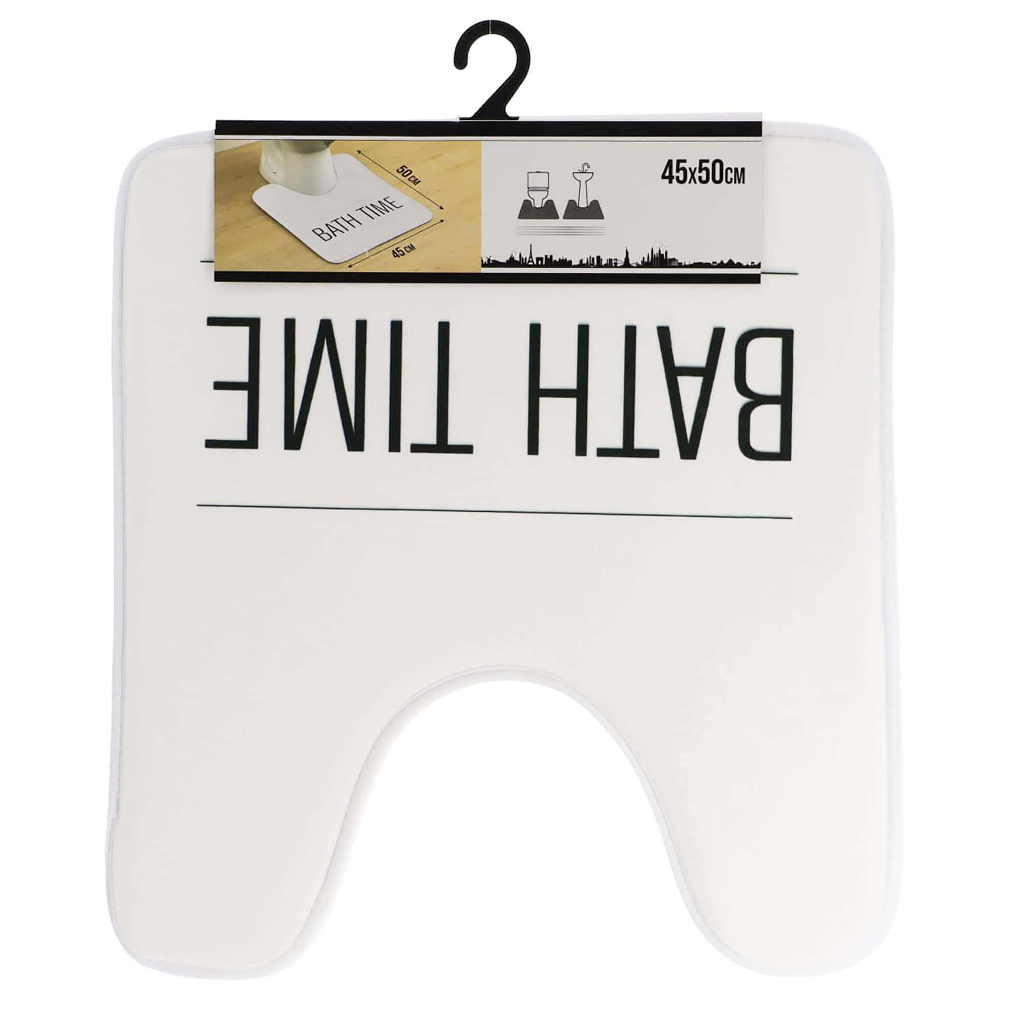 - STYLISH LOOK: Our white contour rug features an elegant ‘Bath Time’ design in black that adds a touch of style and sophistication to your bathroom décor