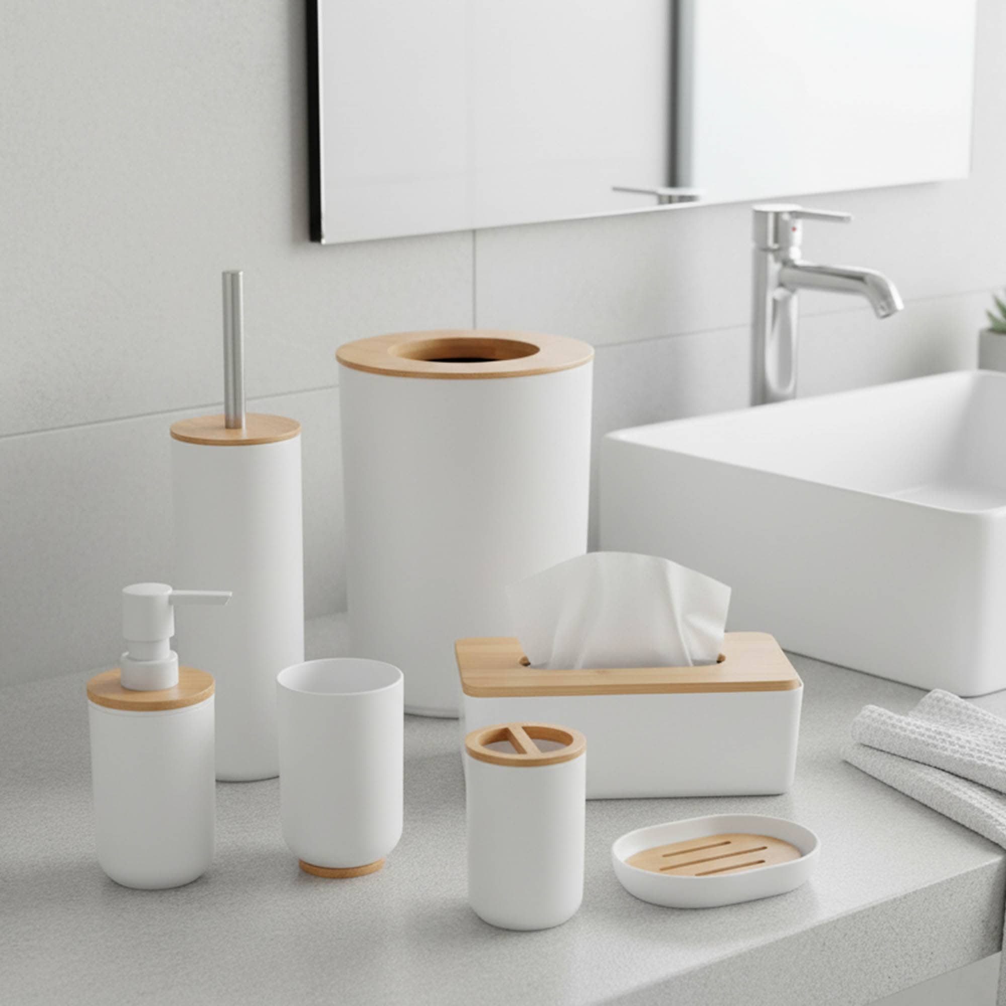 - Natural design: Upgrade your bathroom décor with our pure white toilet brush and holder set featuring a sleek bamboo top