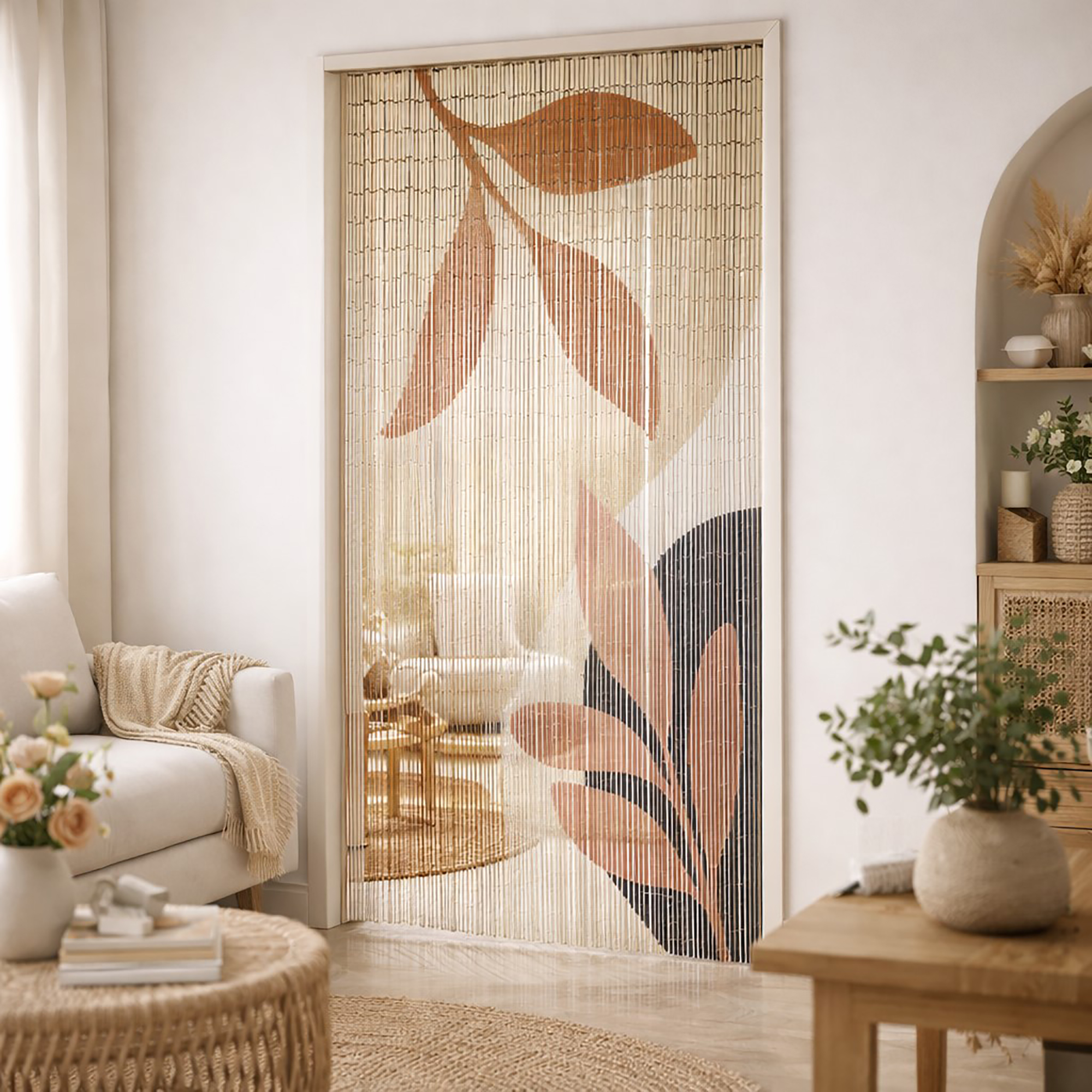 - HAND-PAINTED DESIGN: Enhance your home with our hanging door beads curtain. The intricate leaf pattern and earthy tones of brown and beige create a welcoming and unique atmosphere in any space